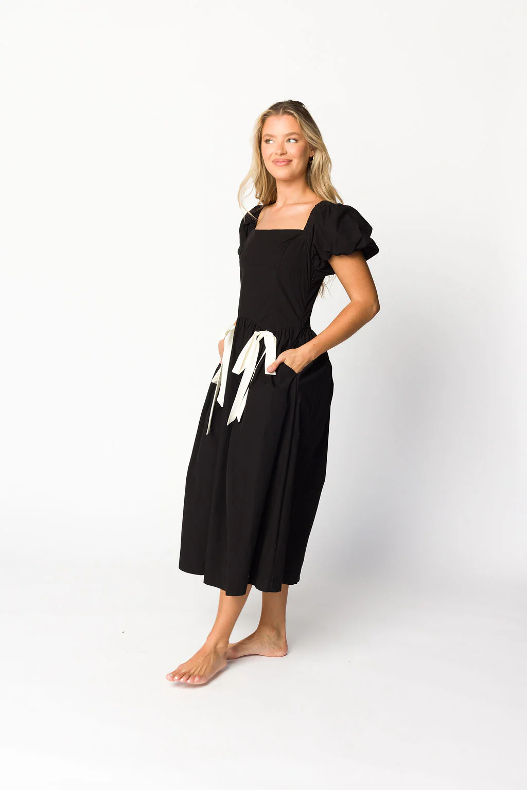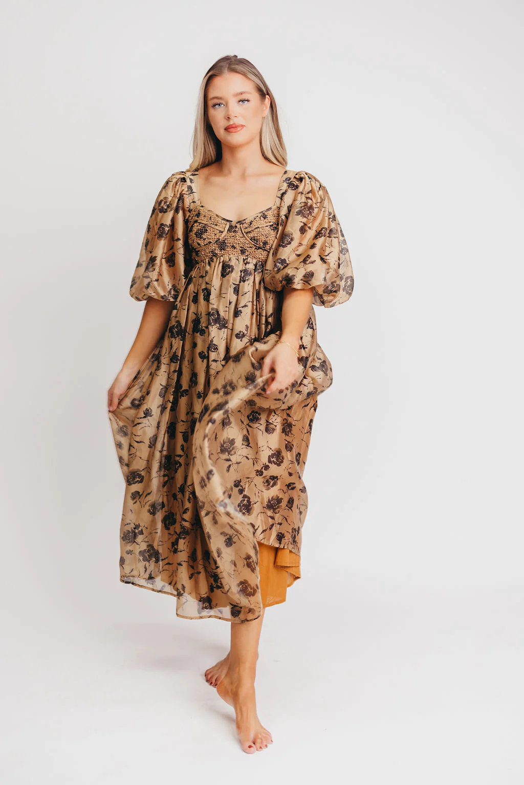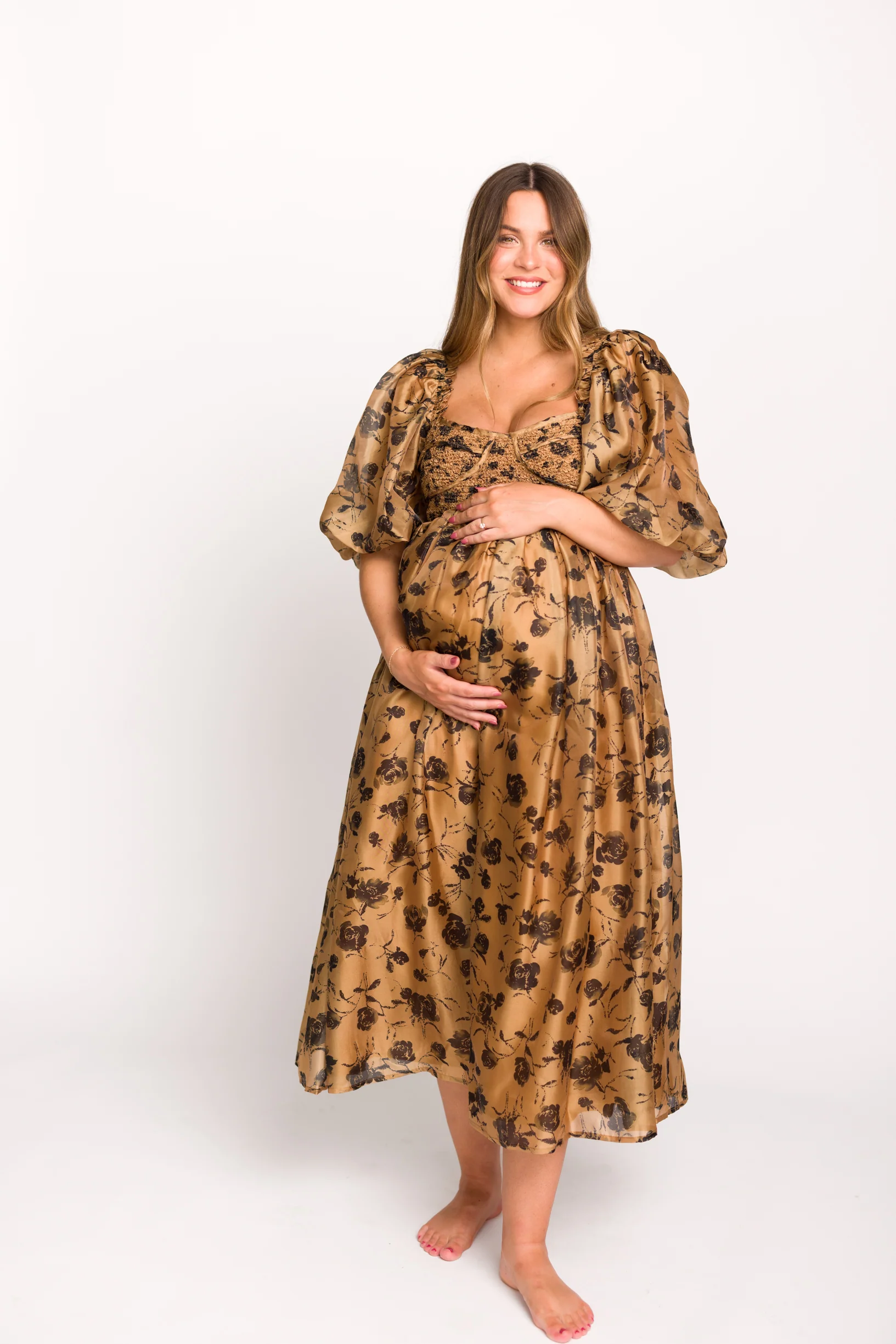 Harlow Camel & Black Floral Maxi Dress with Stretchy Neckline - Bump Friendly (Read Description)