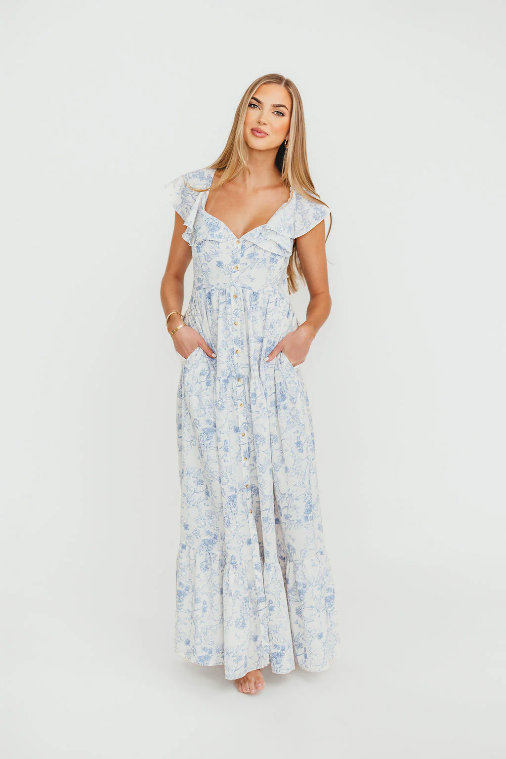 Dorothy Floral Button-up Maxi Dress in Blue/White - Nursing Friendly
