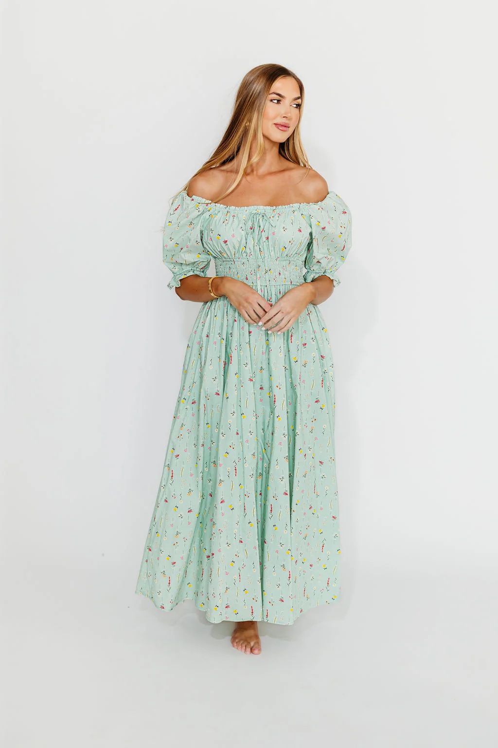 Angie 100% Cotton Floral Maxi in Mint