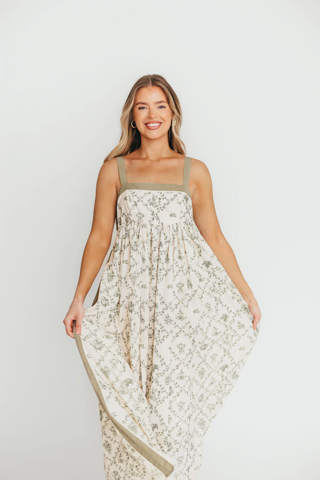Lillian Toile Maxi Dress in Green Palm