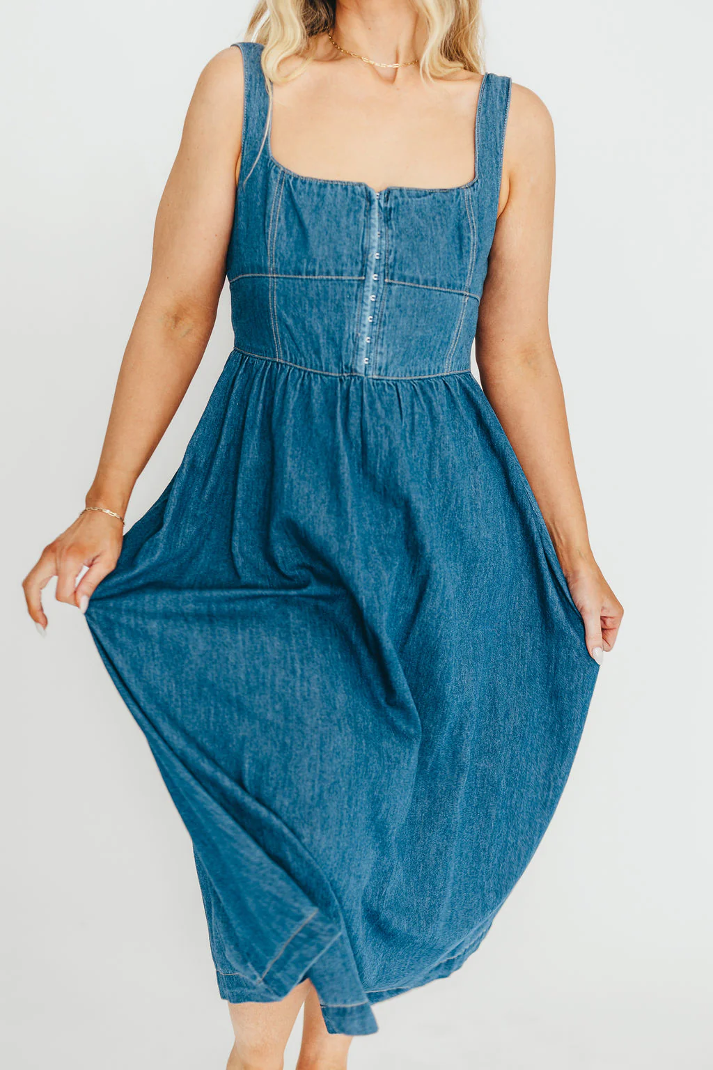 Frankie 100% Cotton Bustier Midi Dress in Denim