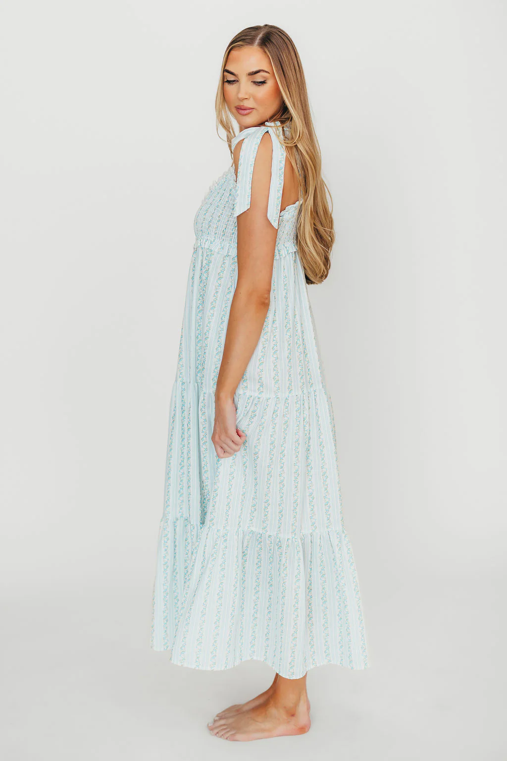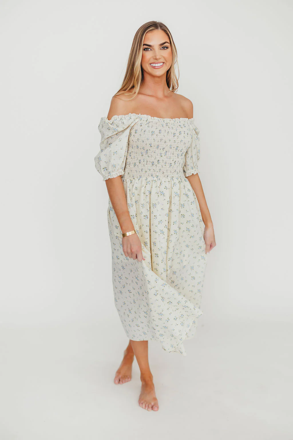 Kinsley Ditsy Floral Smocked Midi Dress in Sky Blue