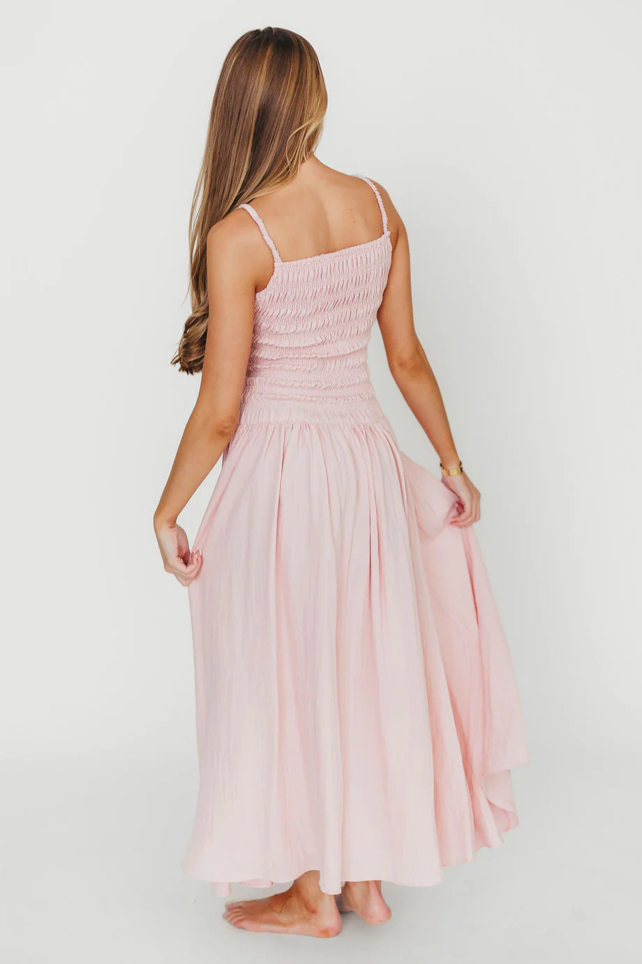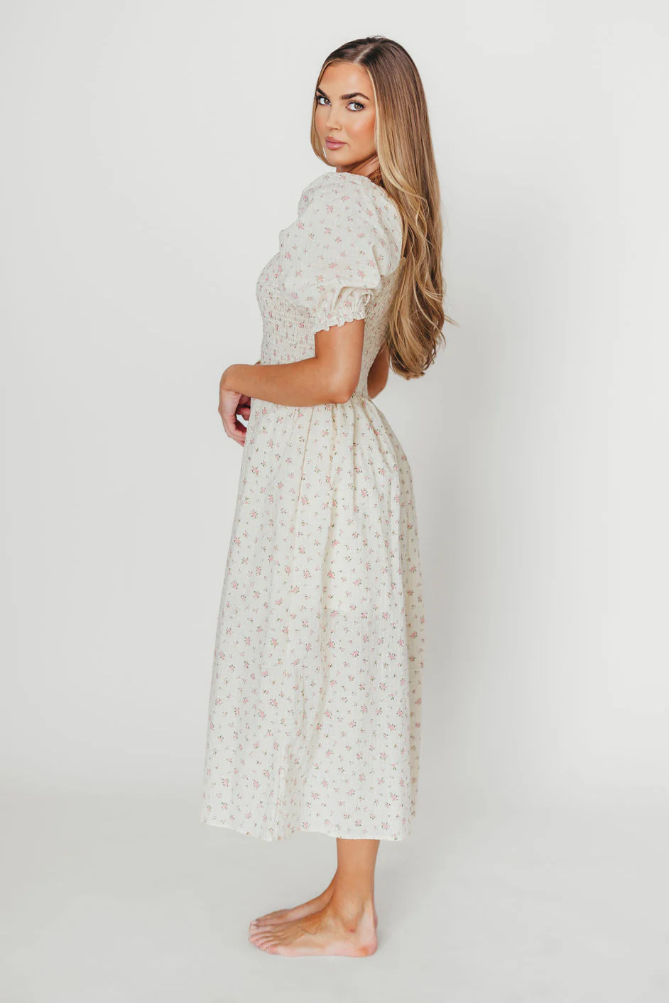 Kinsley Ditsy Floral Smocked Midi Dress in Pink