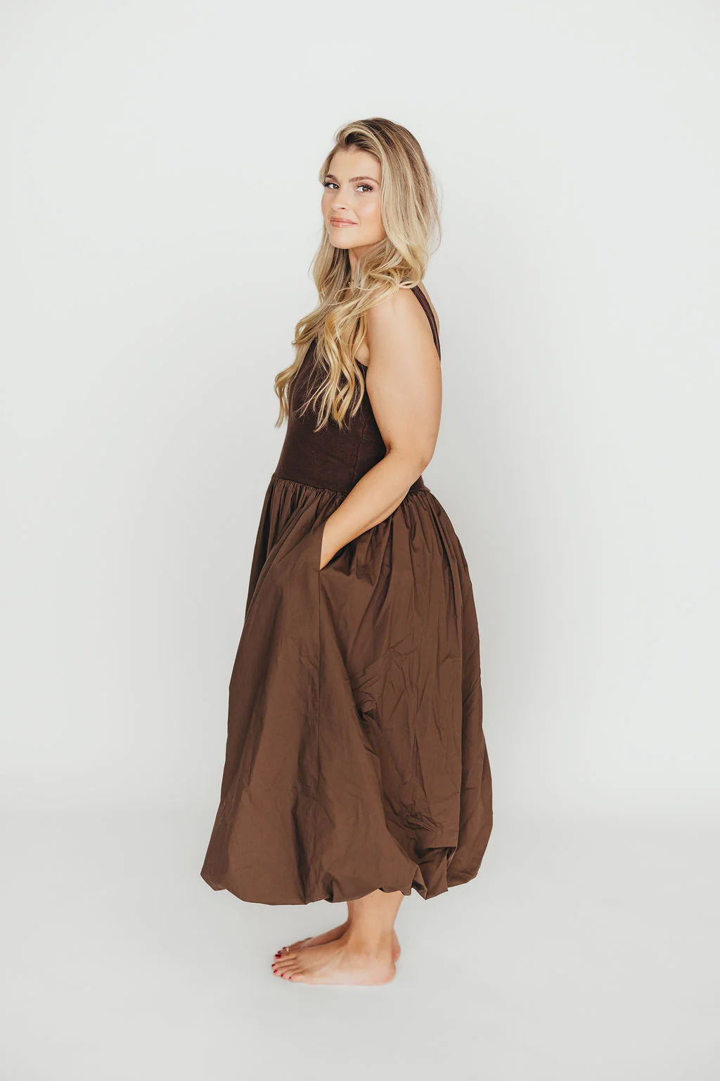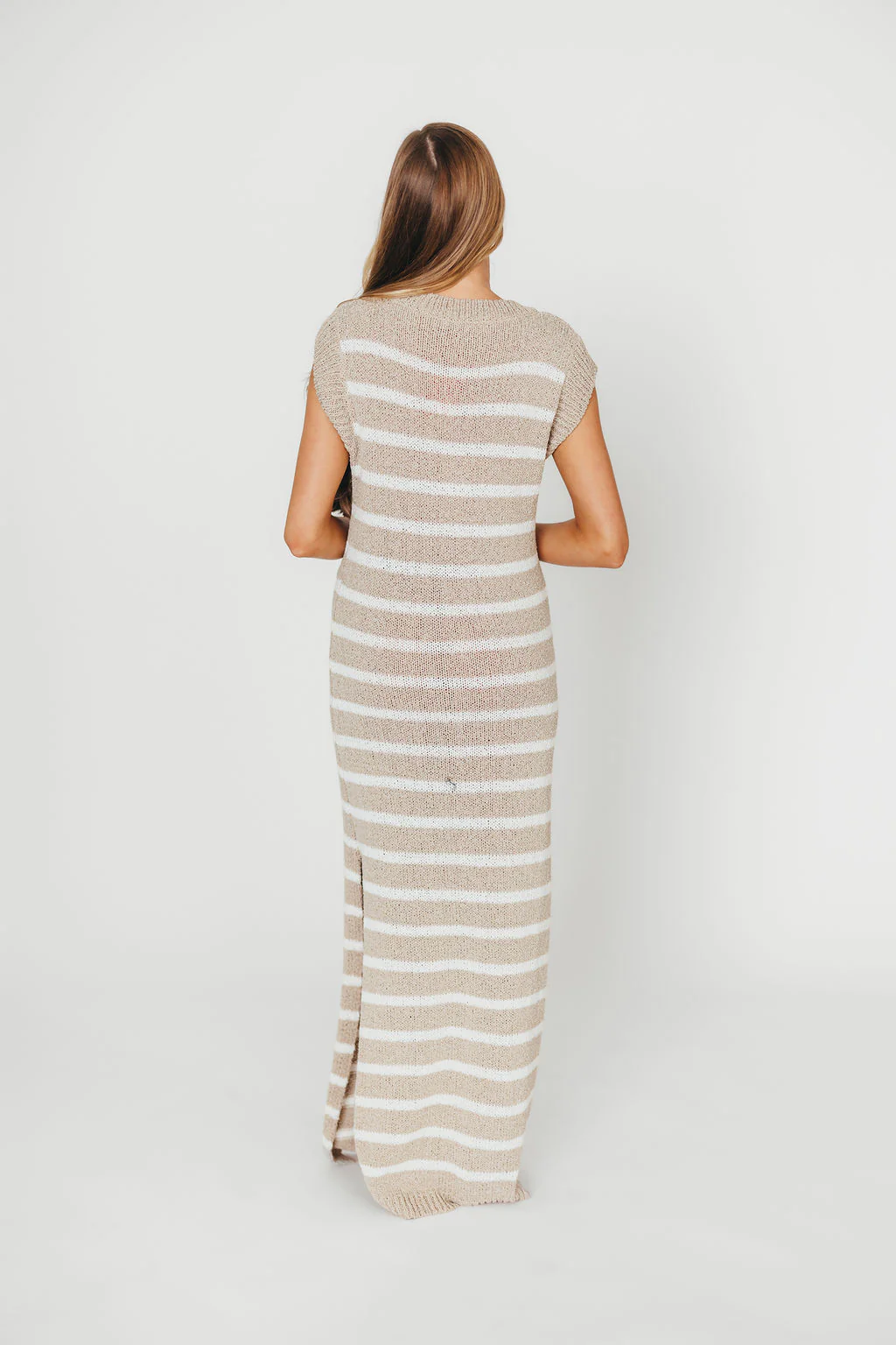 Annie Linen & Knit Maxi Dress in Mocha Stripe