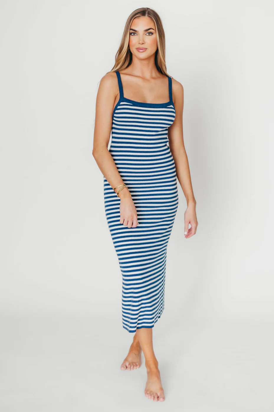 Rhode Striped Bodycon Midi Dress in Ivory/Navy
