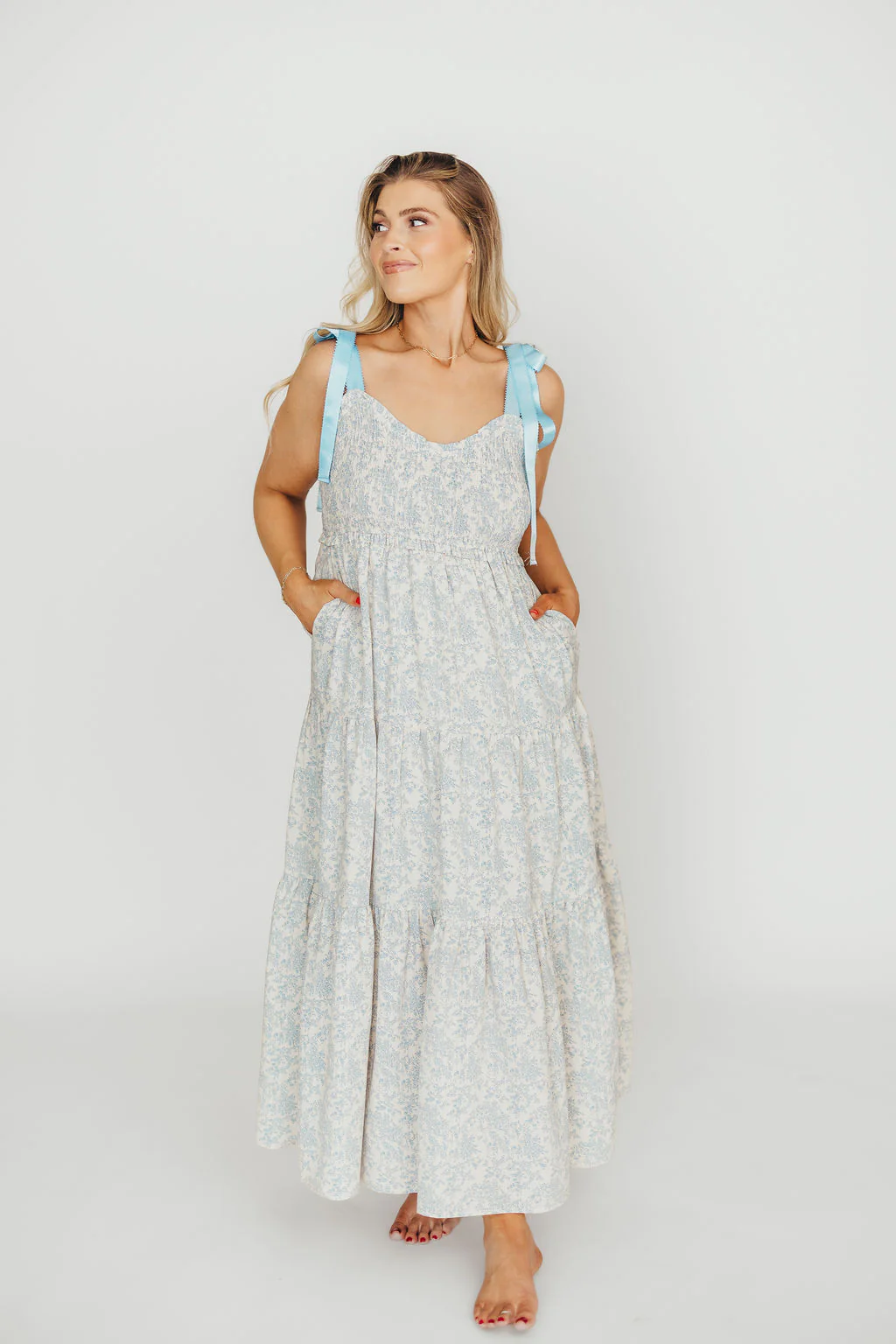Vivienne Maxi Sundress in Ivory/Blue Floral