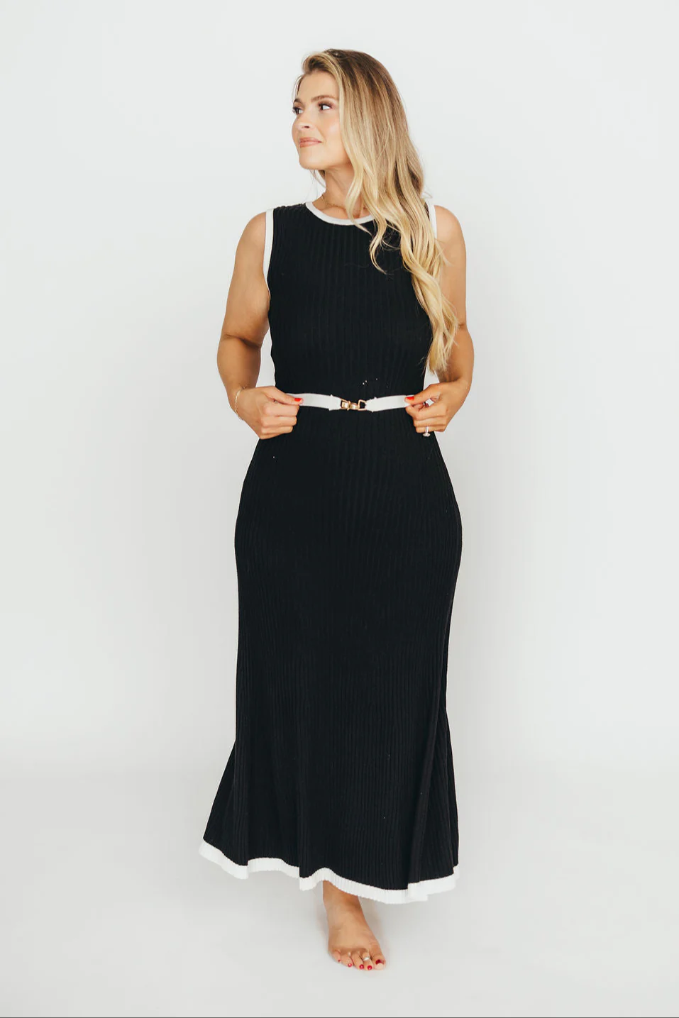 Drew Sleeveless Ribbed Knit Midi Dress in Black/White
