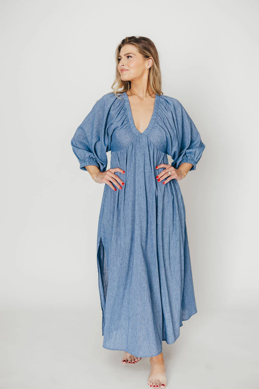 Abigail Sleeveless Denim Midi Dress in Denim Blue