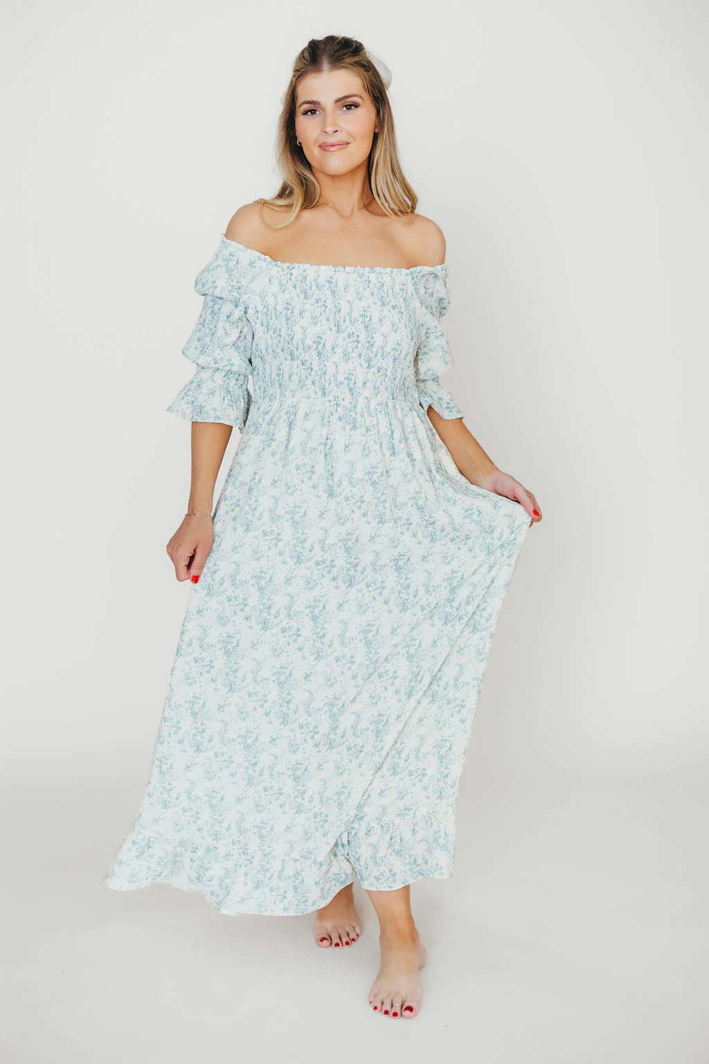 Sienna 100% Cotton Puff Sleeve Maxi Dress in Blue Floral - Bump Friendly