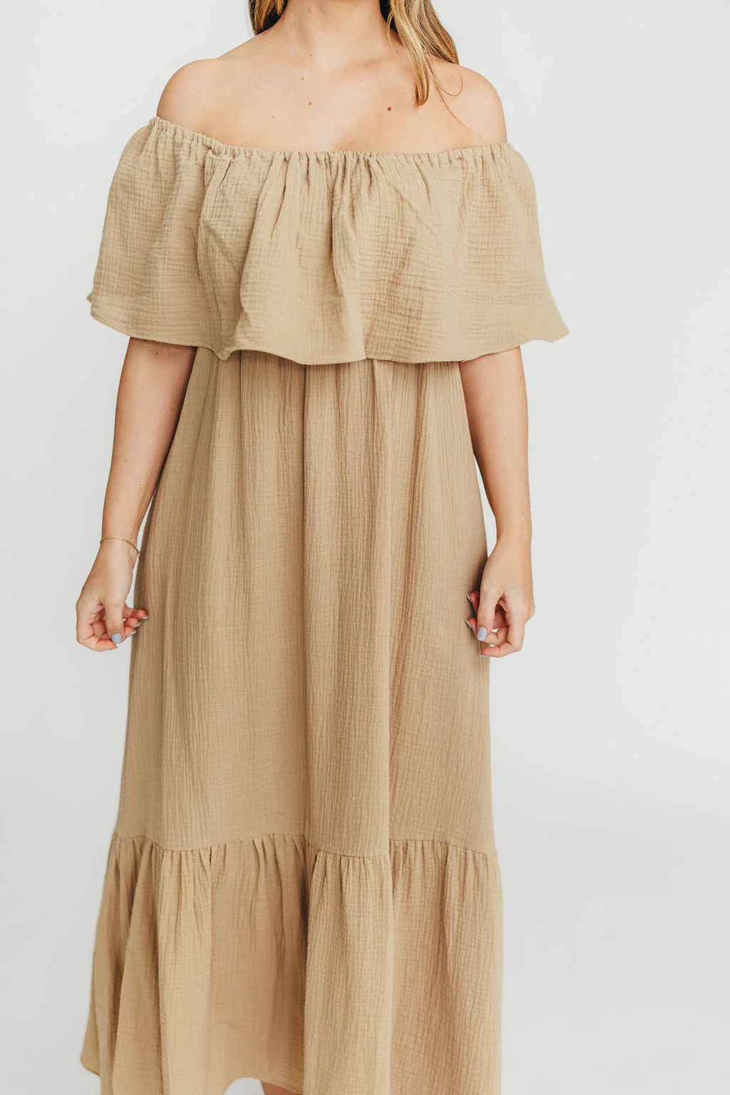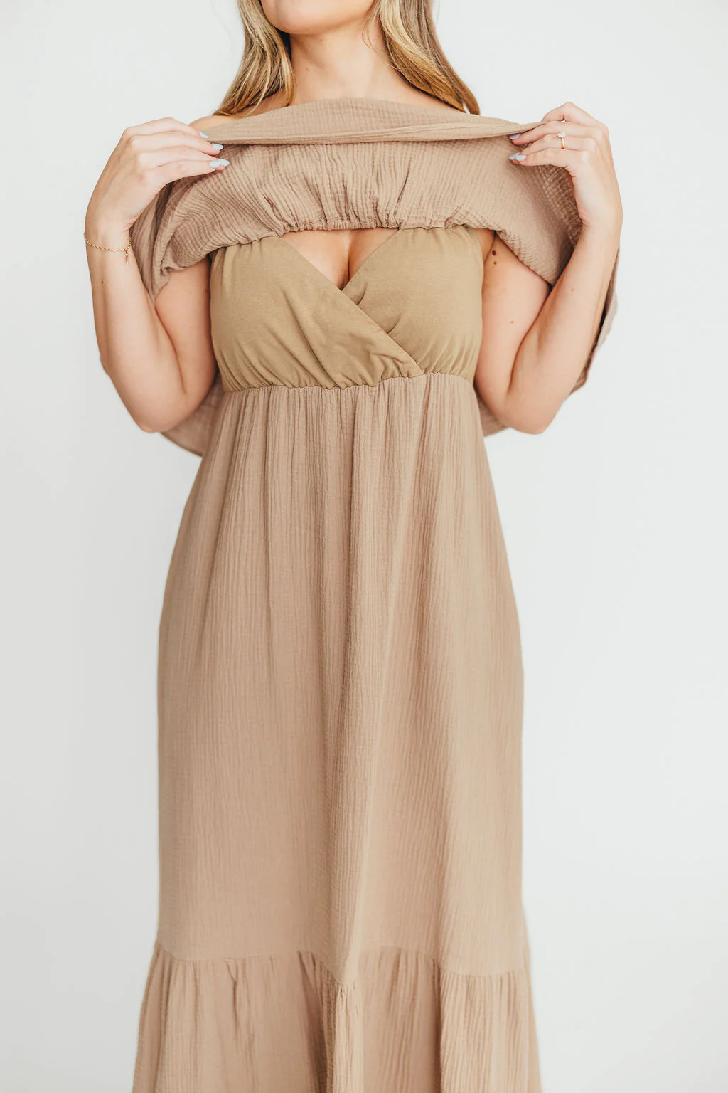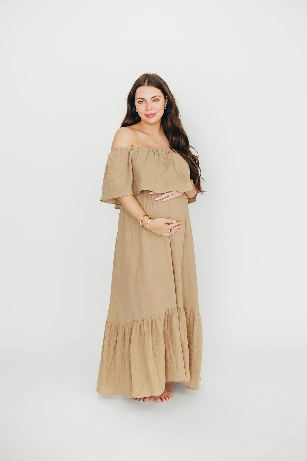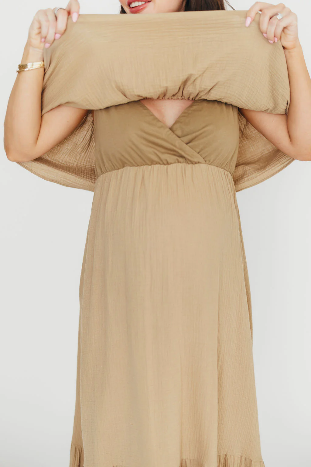 Josie 100% Cotton Maxi Dress in Beige - Bump & Nursing Friendly
