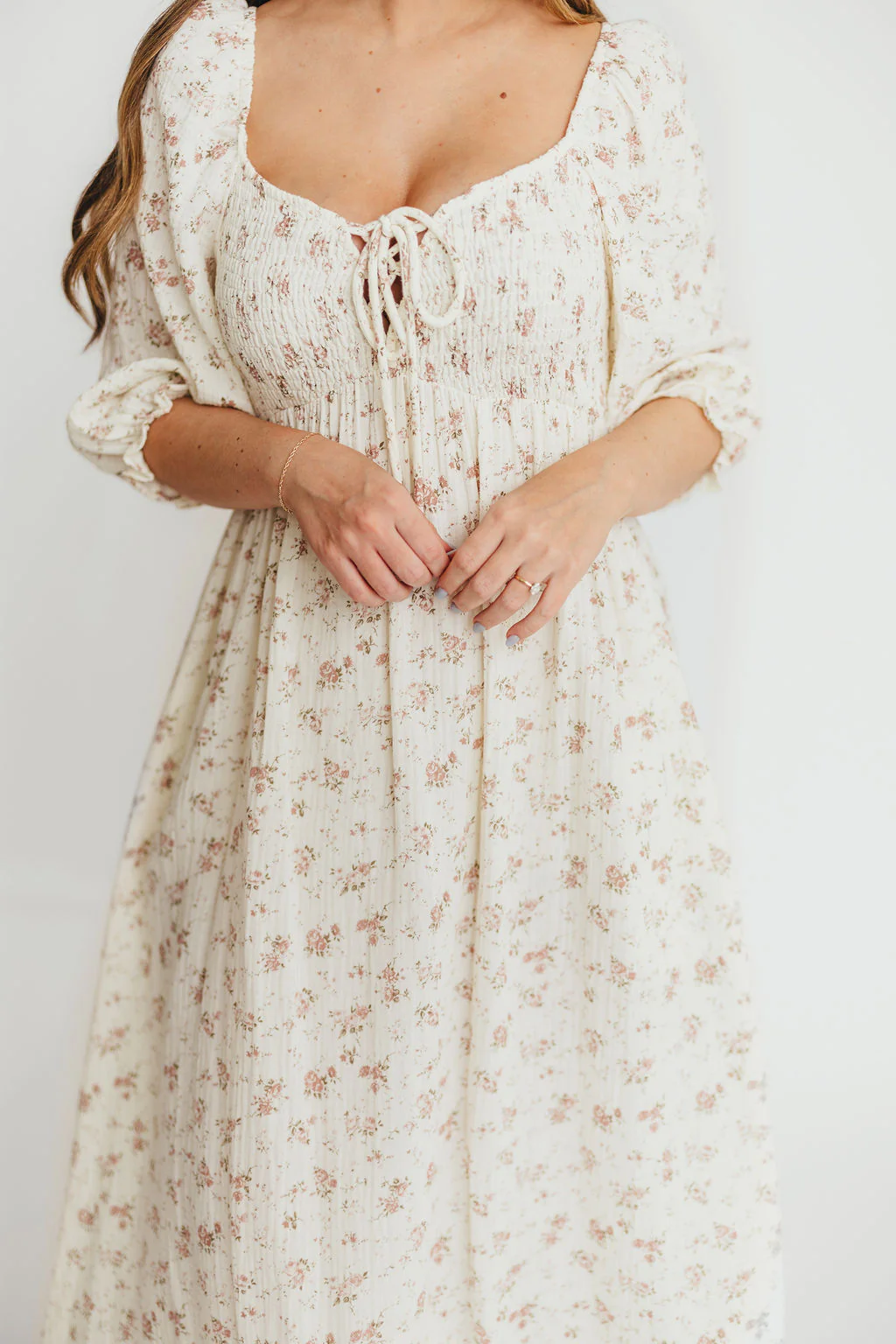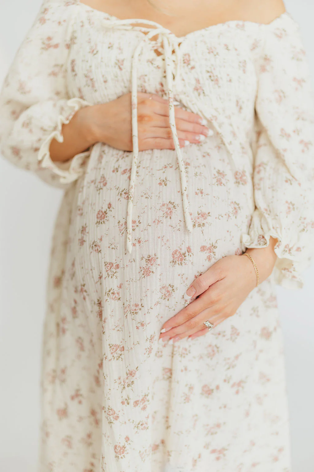 Cecilia 100% Cotton Smocked Maxi Dress in Ivory/Mauve Floral - Bump Friendly