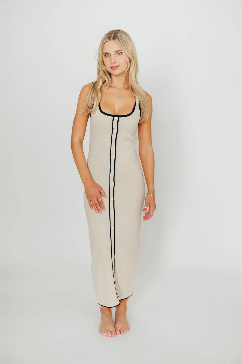 Gigi Sleeveless Midi Sweater Dress in Cream