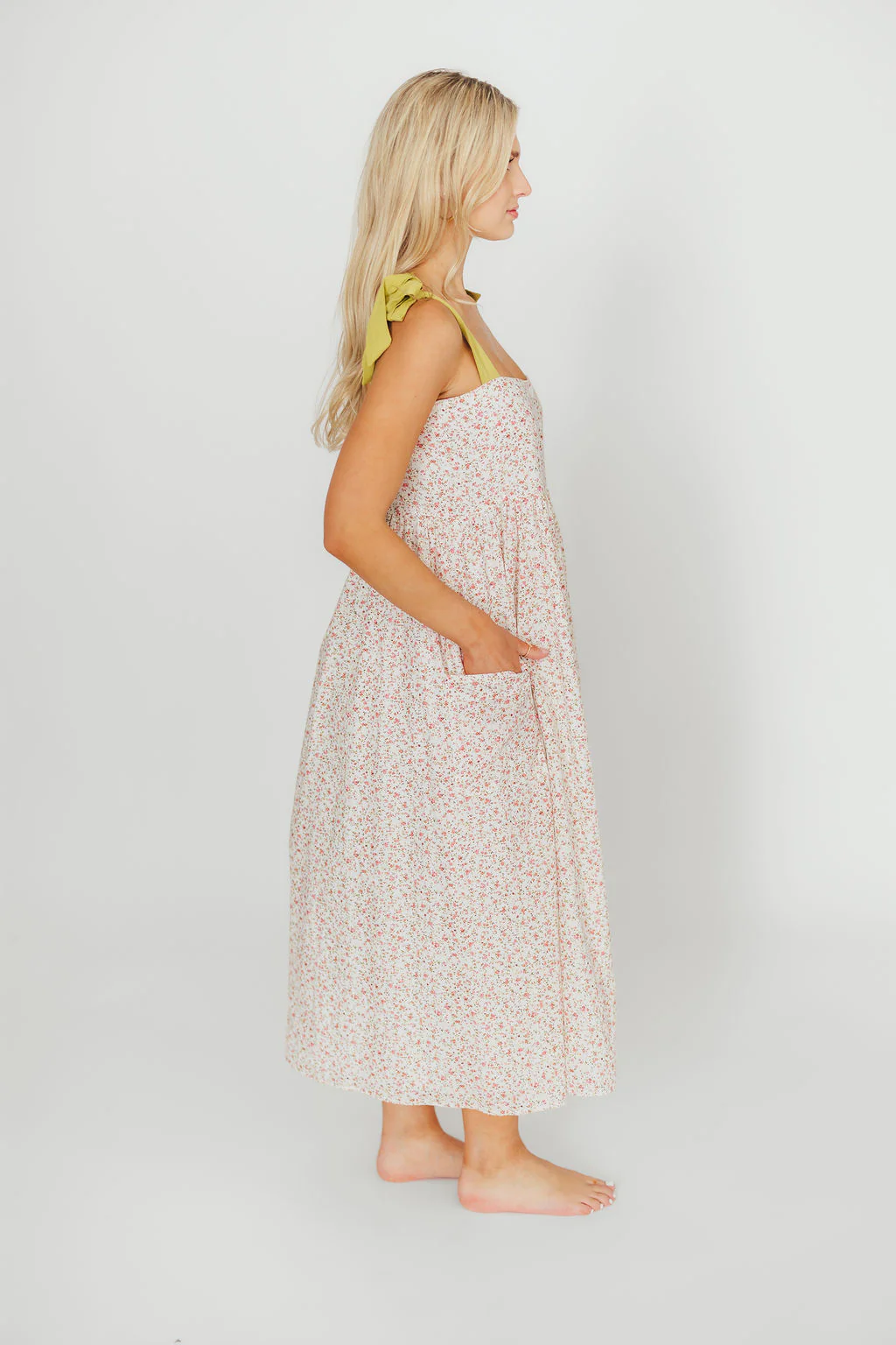 Everest Bow Tie Strap Button Down Midi Dress in Floral Multi - Nursing Friendly (Restocking 4/15)