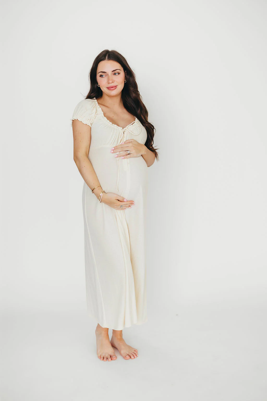 Remi Pointelle Maxi Dress in Custard - Bump & Nursing Friendly