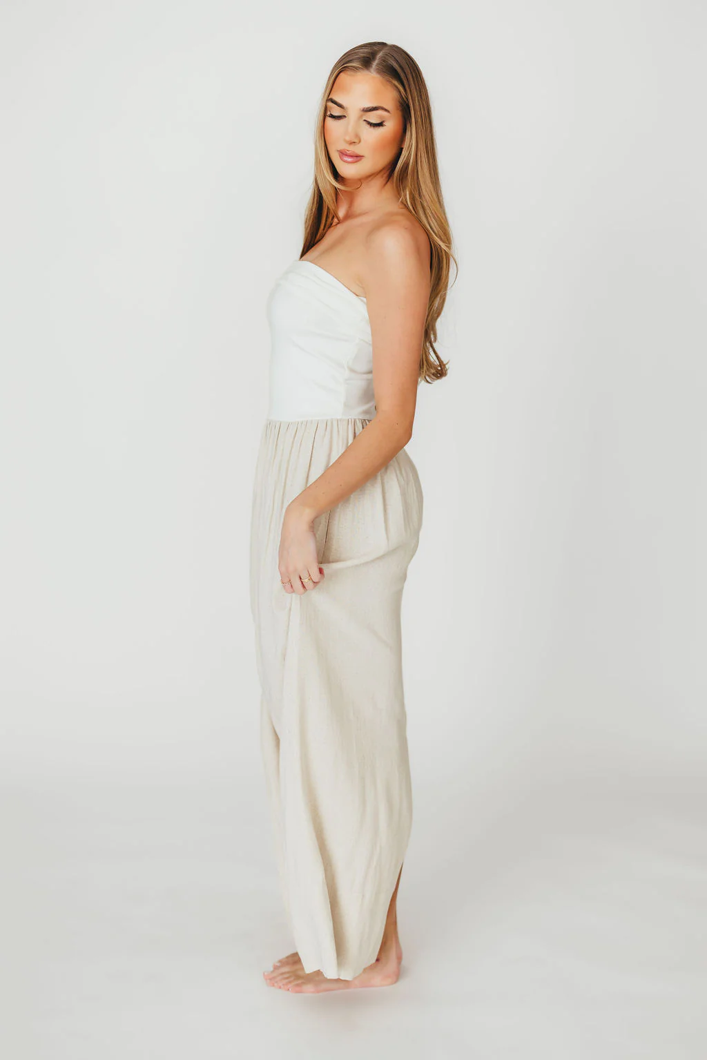 Kaylee Linen and Ribbed Knit Maxi Dress in White/Oatmeal