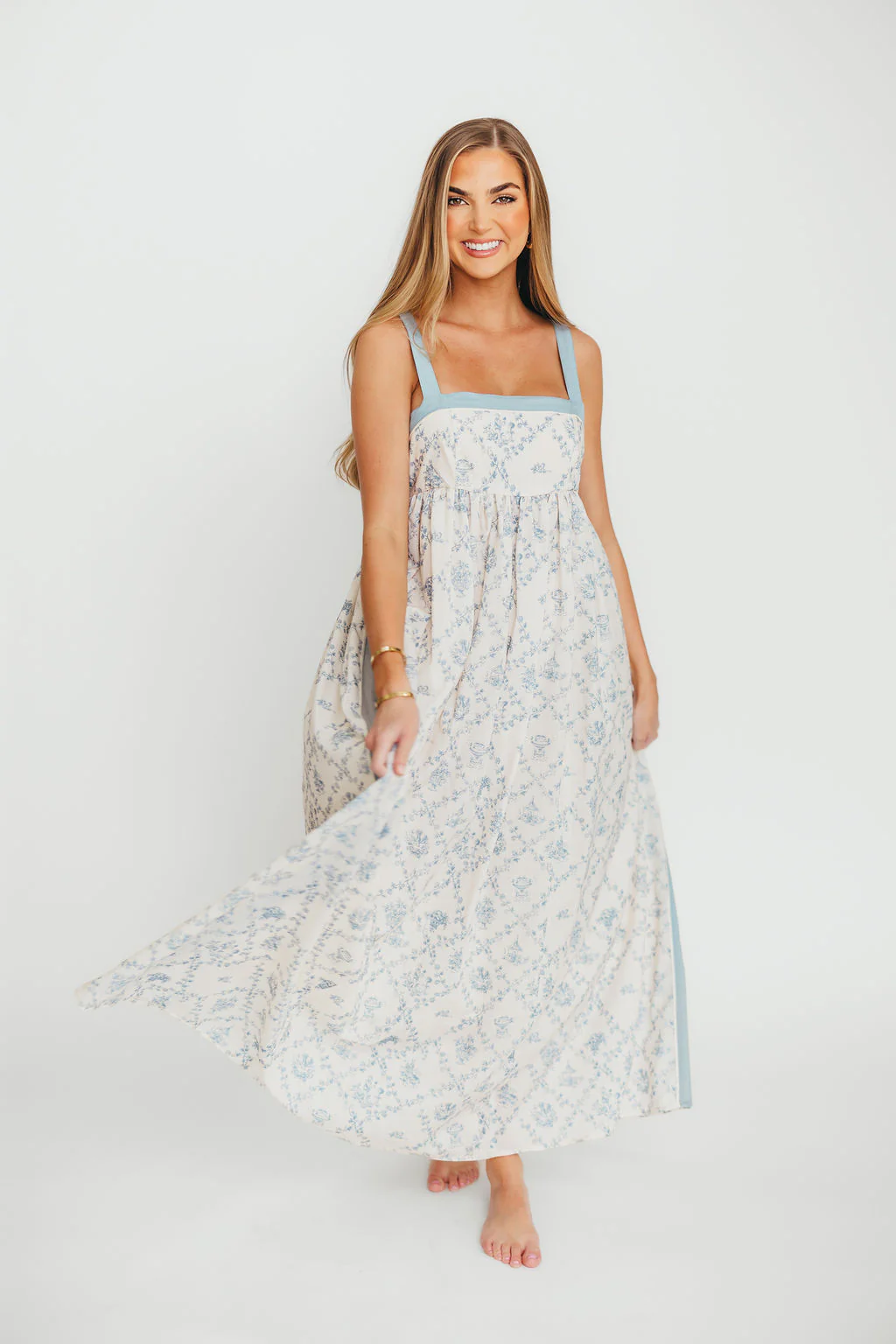 Lillian Toile Maxi Dress in French Blue