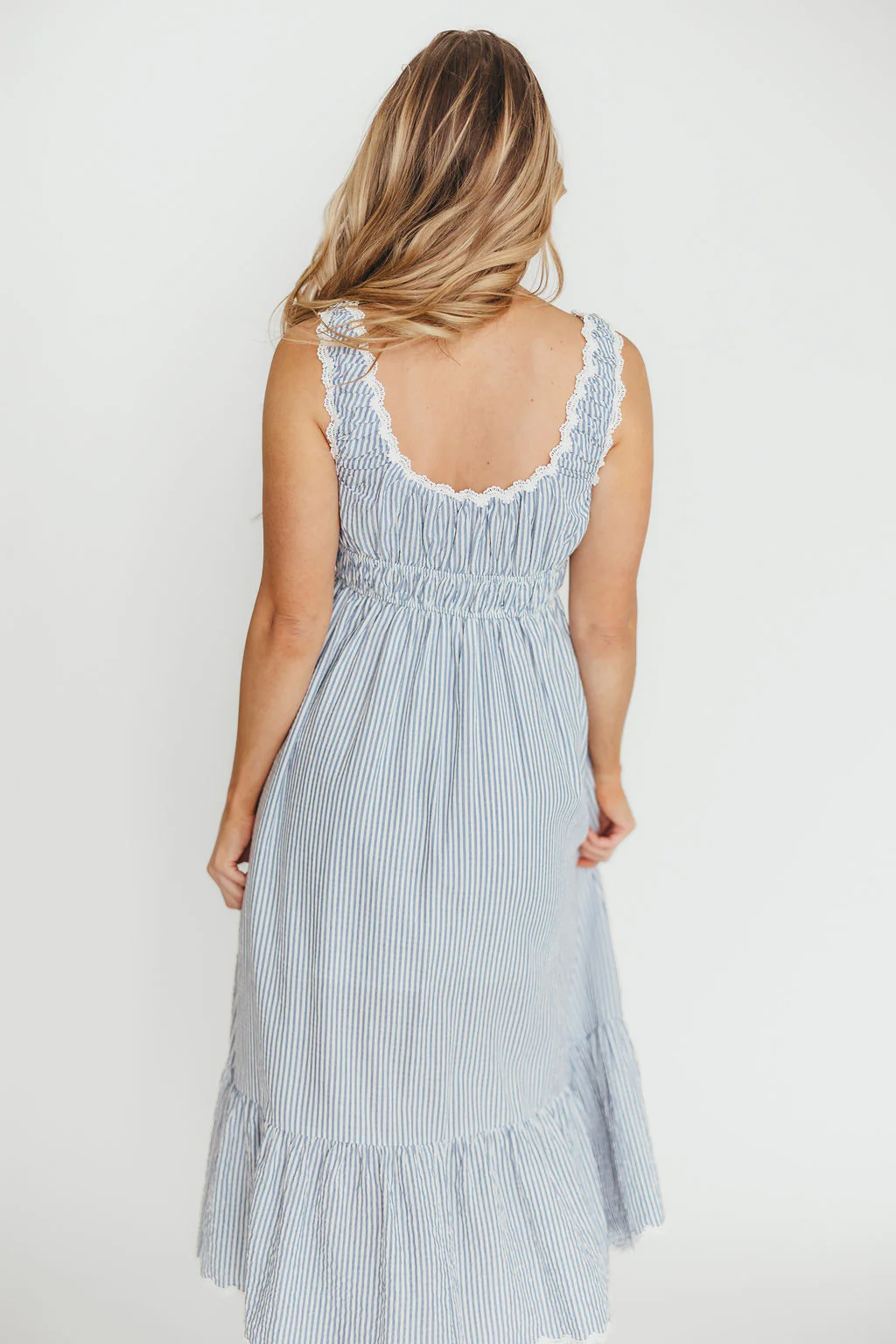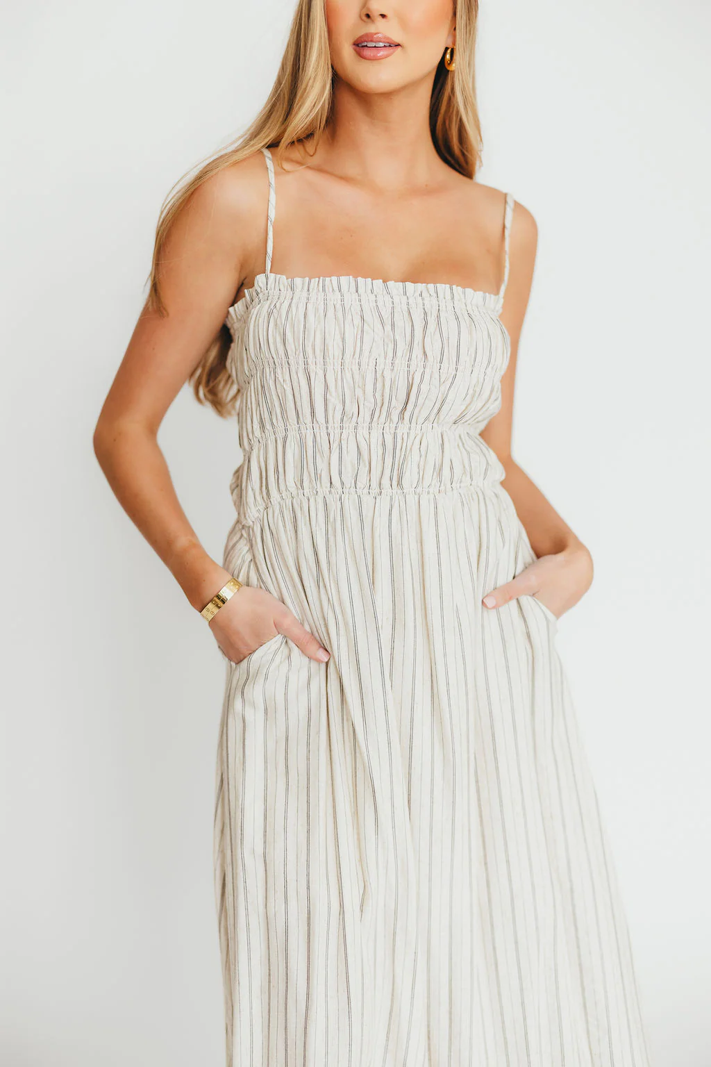 Riley Striped Linen Midi Dress in Ivory