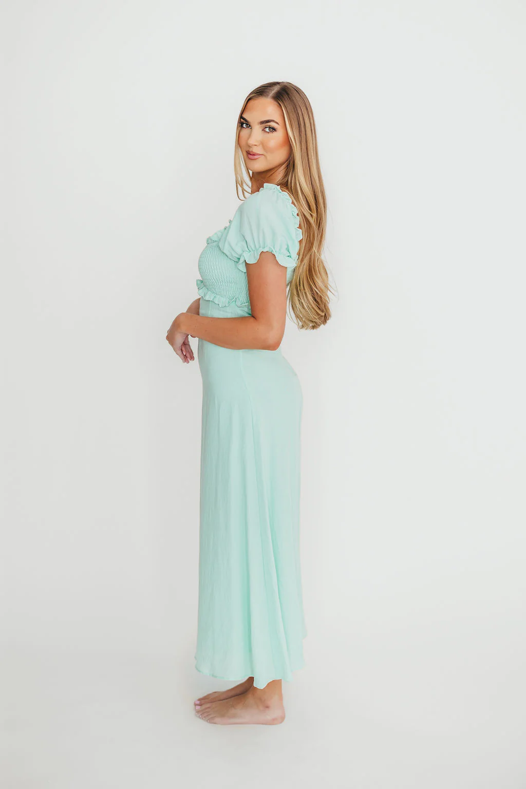 Penny Puff Sleeve Ruffle Midi Dress in Mint