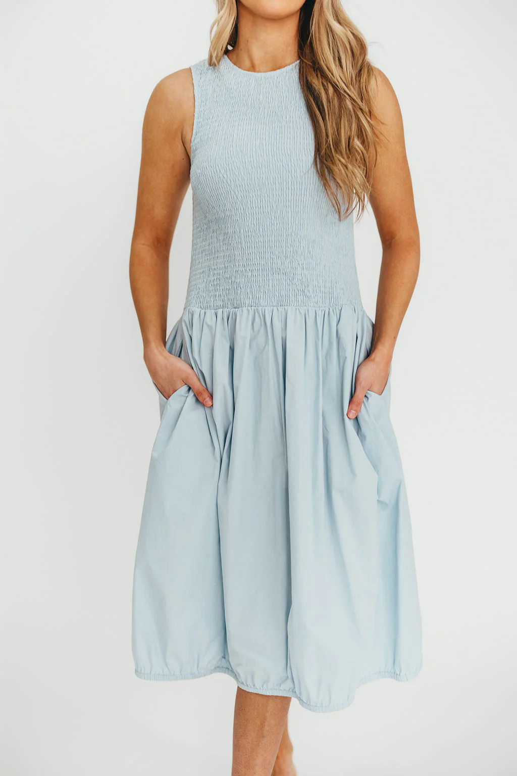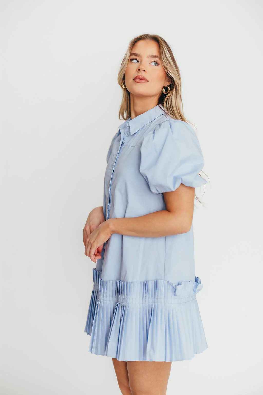 Alicia Pleated Hem Mini Dress in Powder Blue