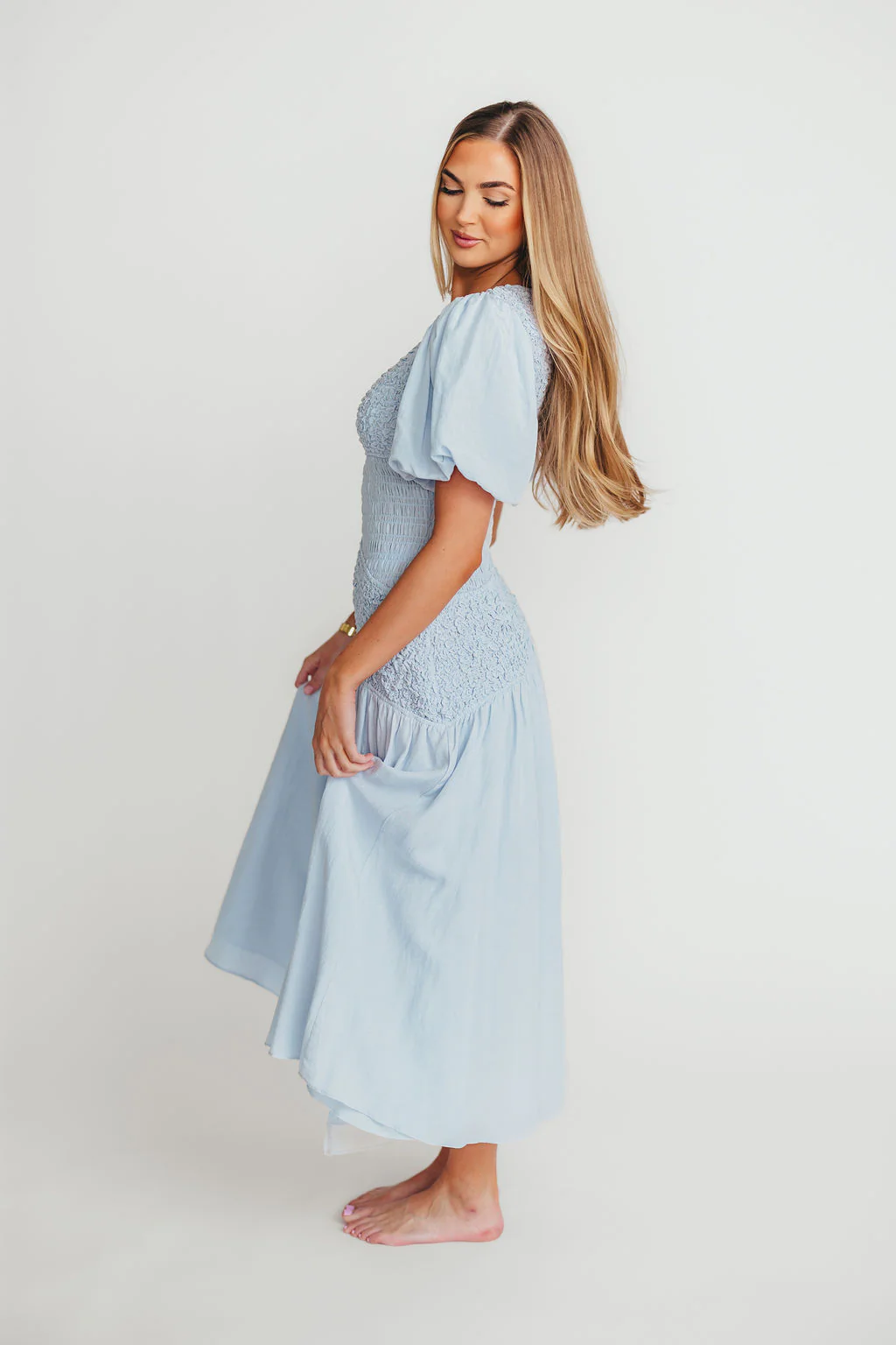 Theoni Asymmetrical Smocked Dress in Blue
