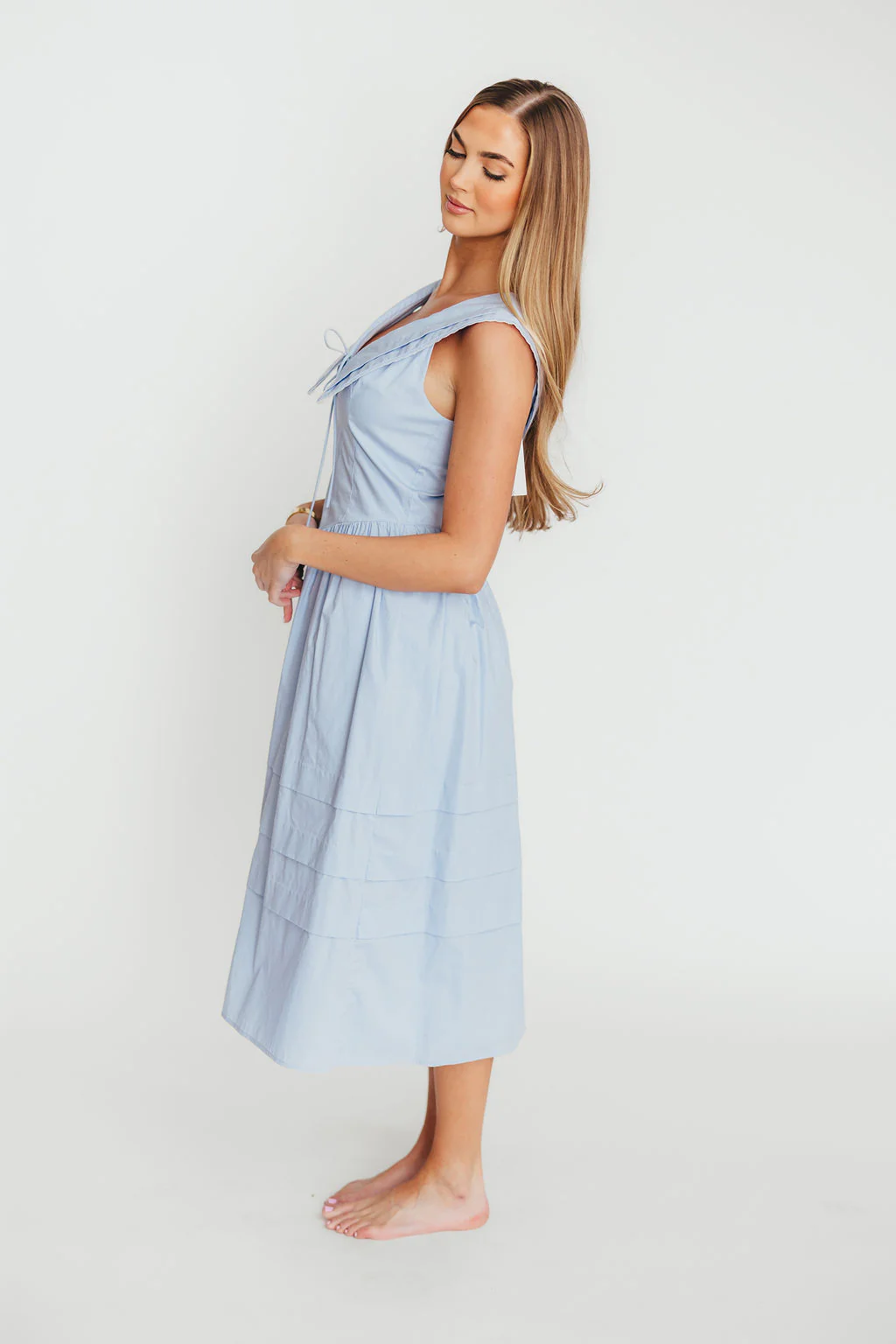 Sailor 100% Cotton Collared Midi Dress in Blue