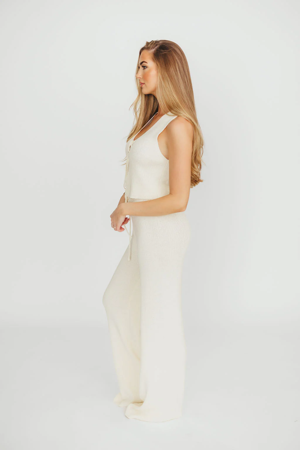 Adele Ribbed Knit Top and Pants Set in Light Taupe
