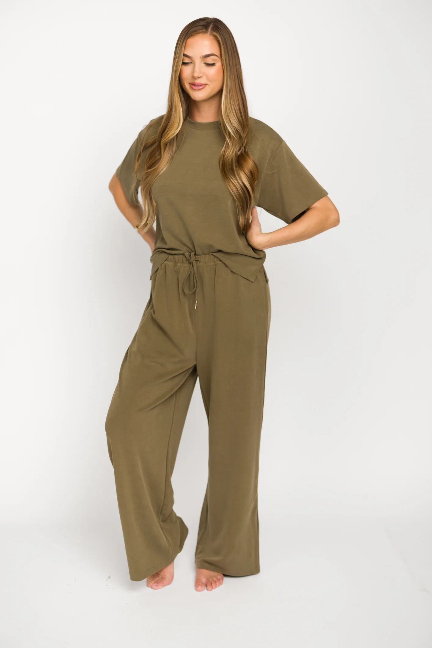 Macy Loose Fit T-Shirt and Wide Leg Pant Set in Sage