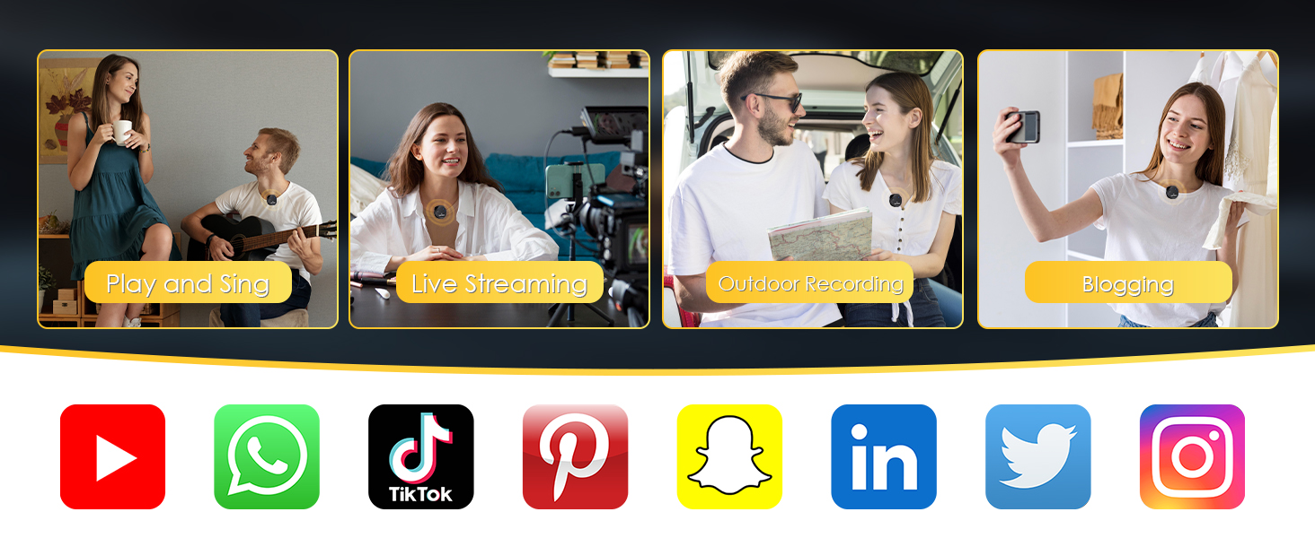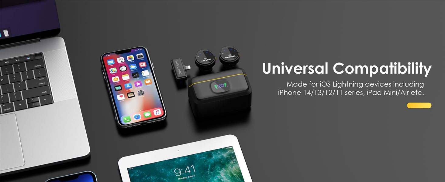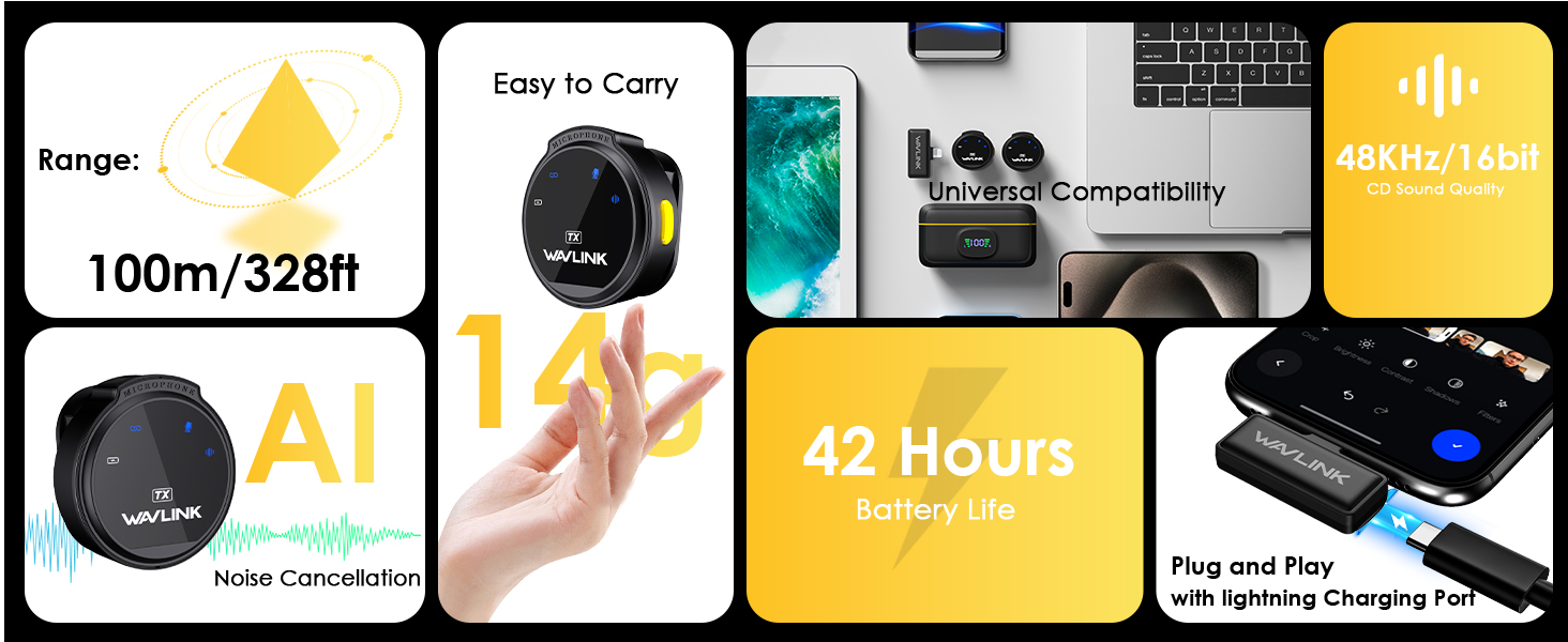 - 【Ampia compatibilità】 Il microfono lavalier wireless WAVLINK è compatibile con diversi dispositivi, tra cui Phone serie 14/13/12/11, Pad Mini/Air (con interfaccia Lighning) e PC portatili. Questo microfono versatile apre numerose possibilità per i creatori di contenuti, rendendolo adatto per la registrazione di video, podcasting, vlogging, TikTok, YouTube, Instagram, Facebook e altro ancora.