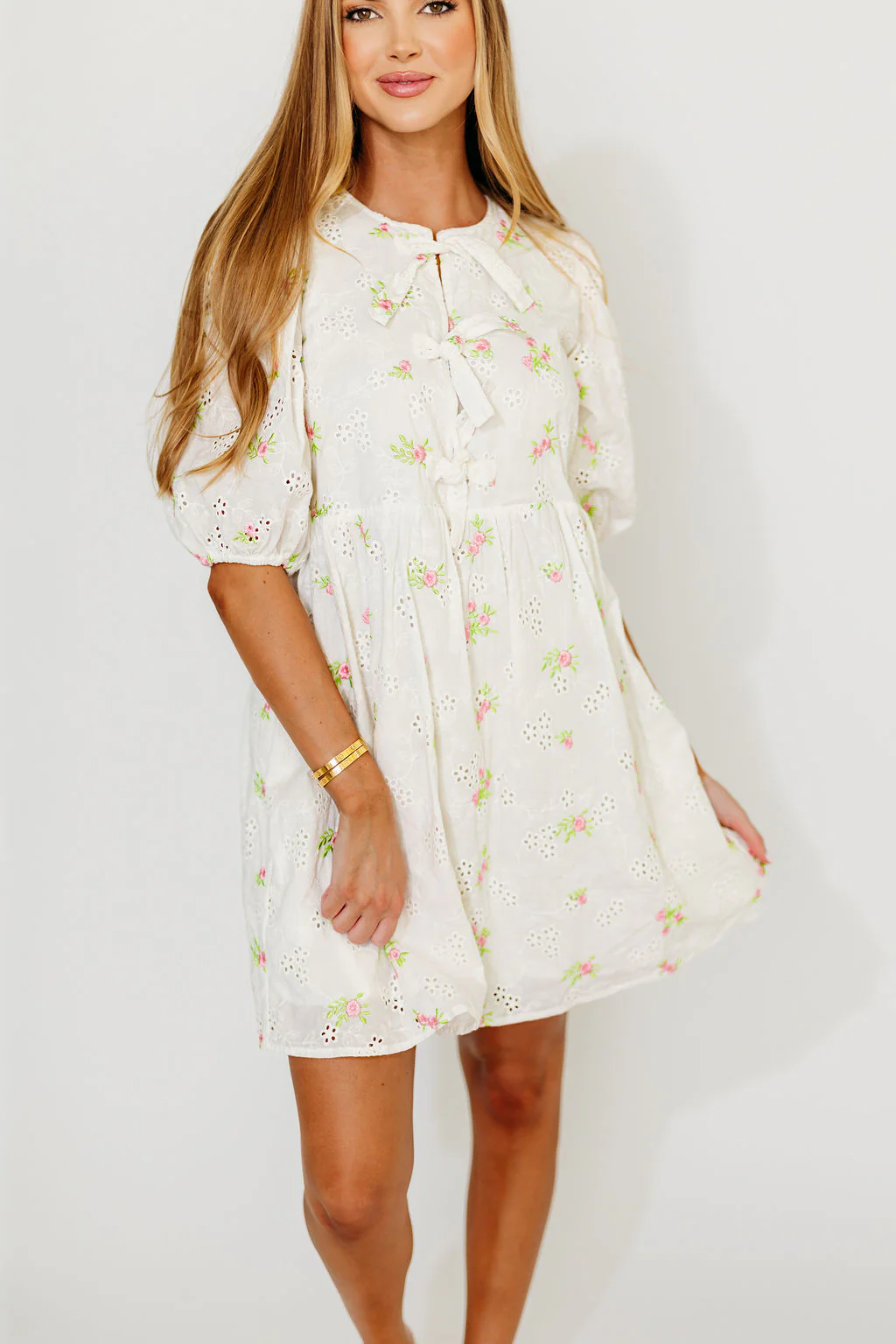 Saylor Floral Dress in White Pink