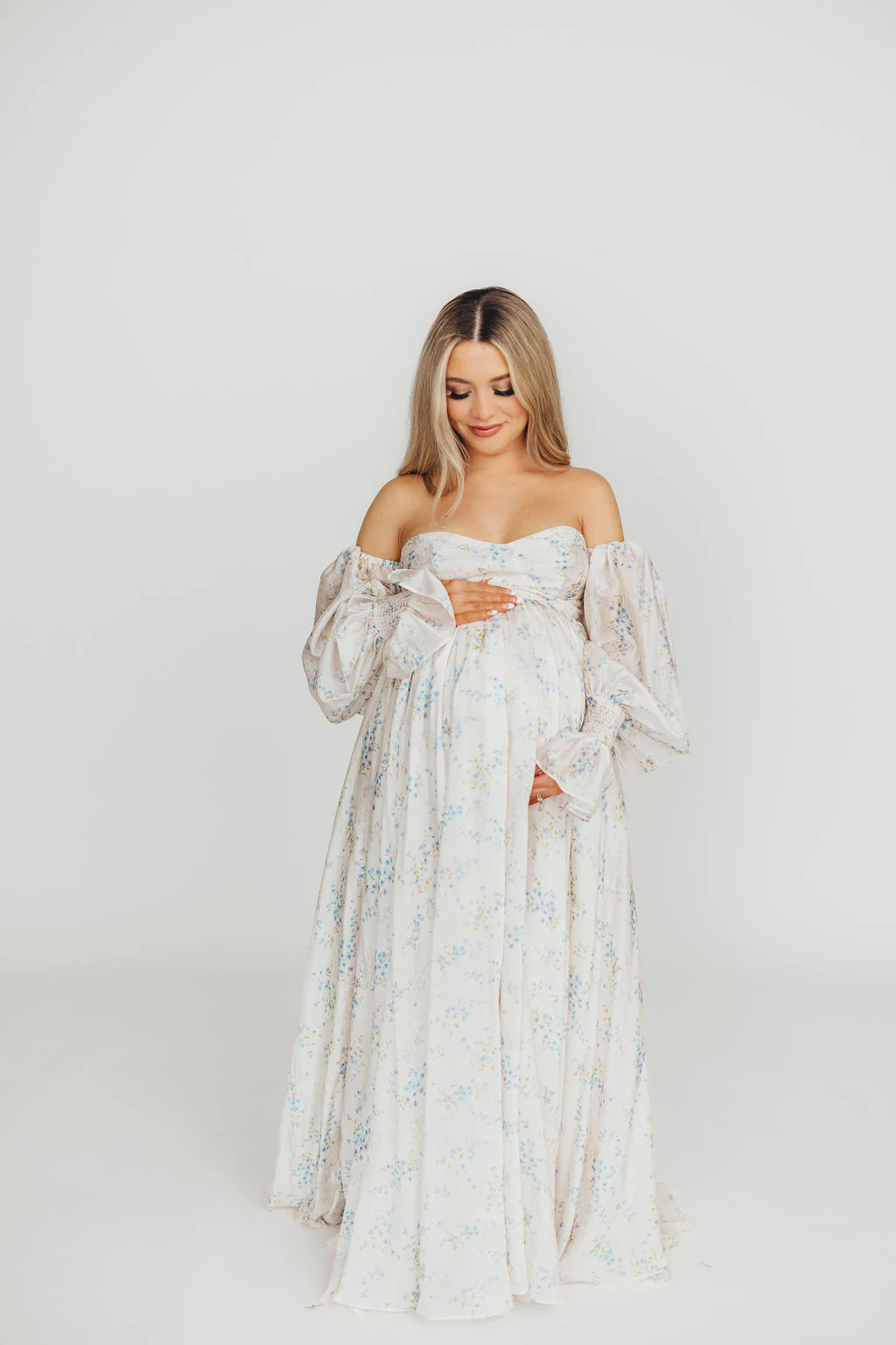 Harlow Maxi Dress in Taupe Floral - Bump Friendly