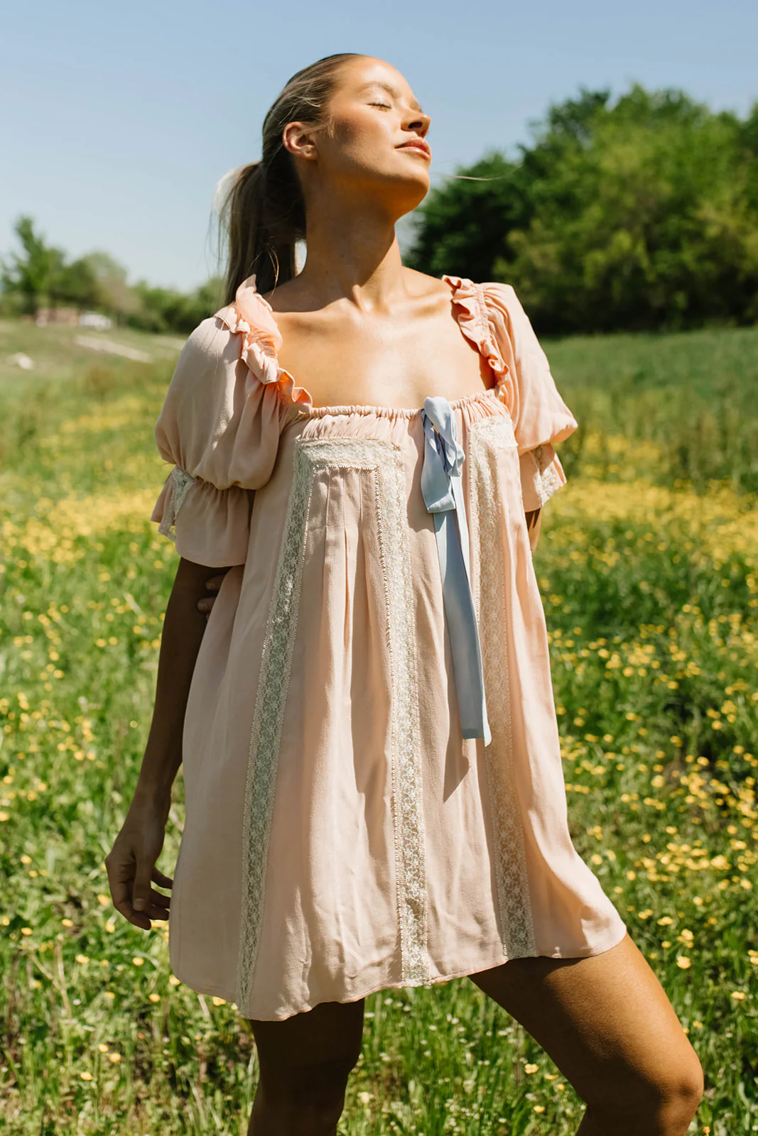 Enchanted Floral & Gingham Ruffled Maxi Dress in Pink Rose
