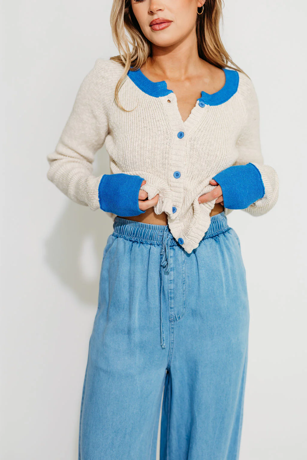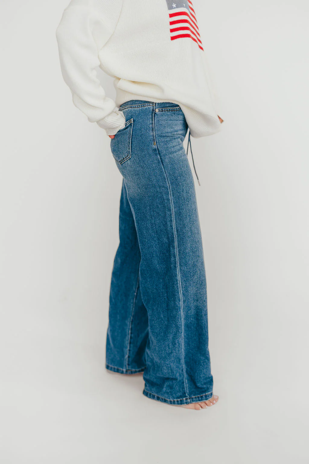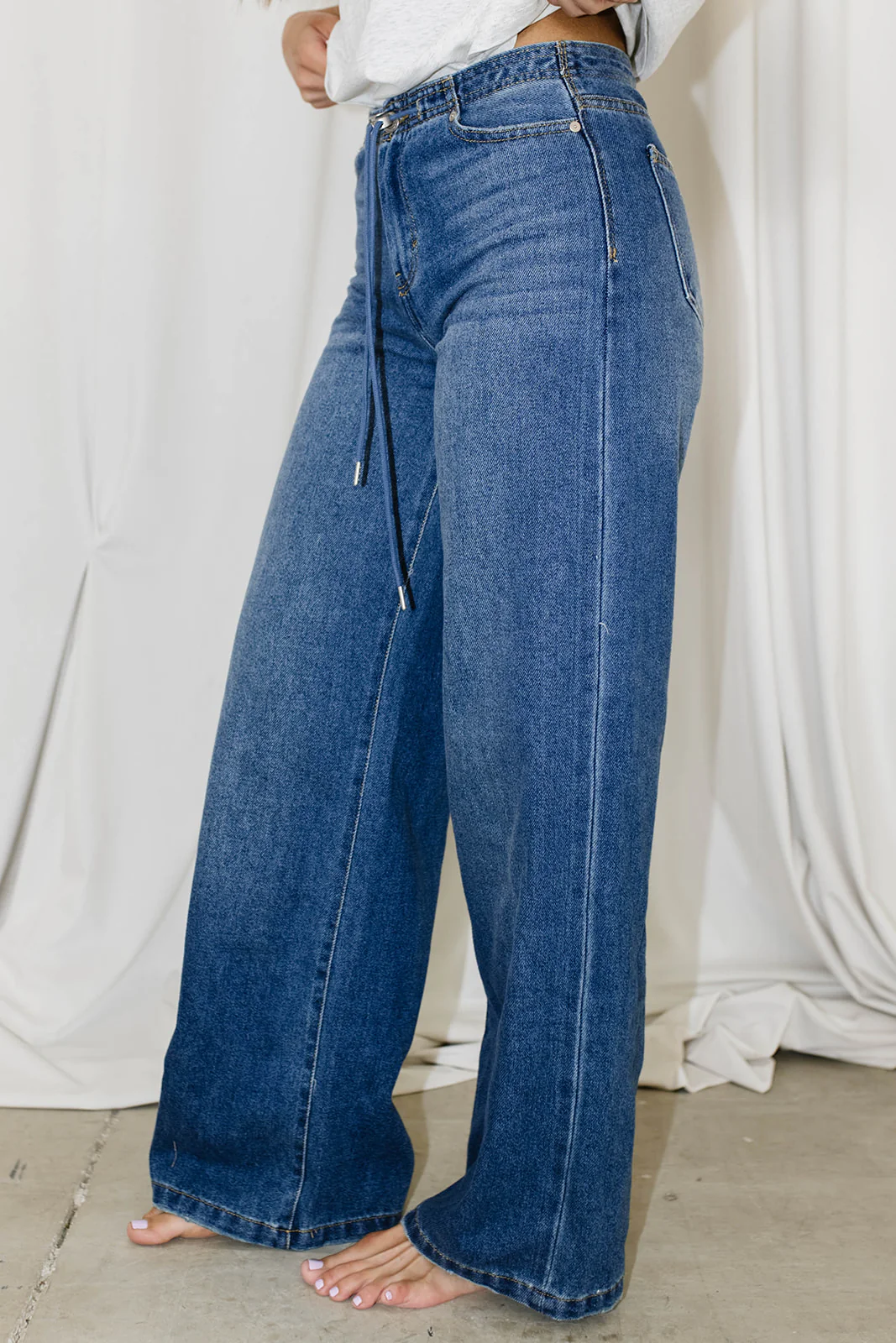 Andrea Elastic Waist Wide Leg Pants in Chambray