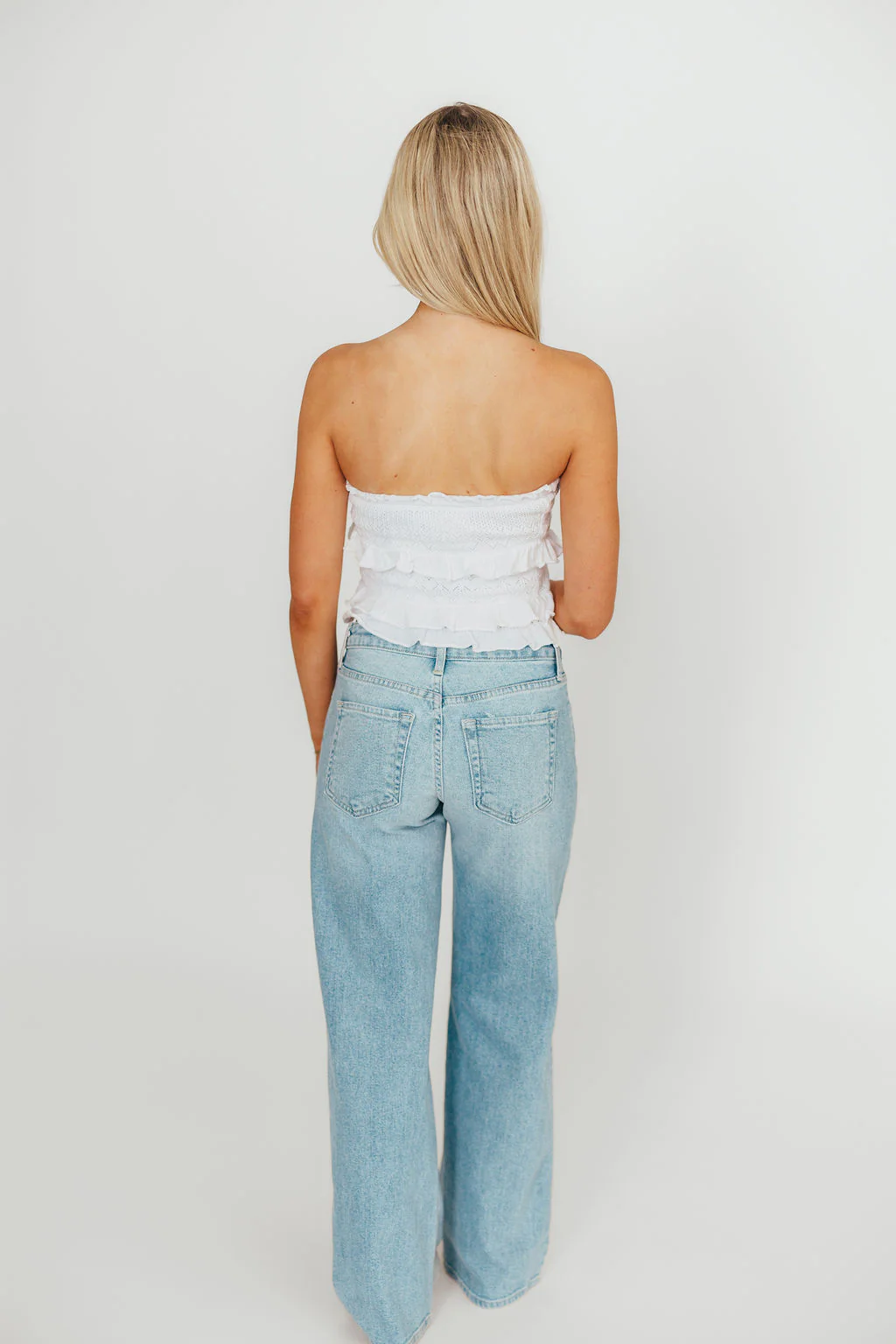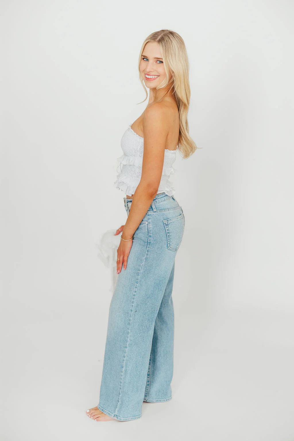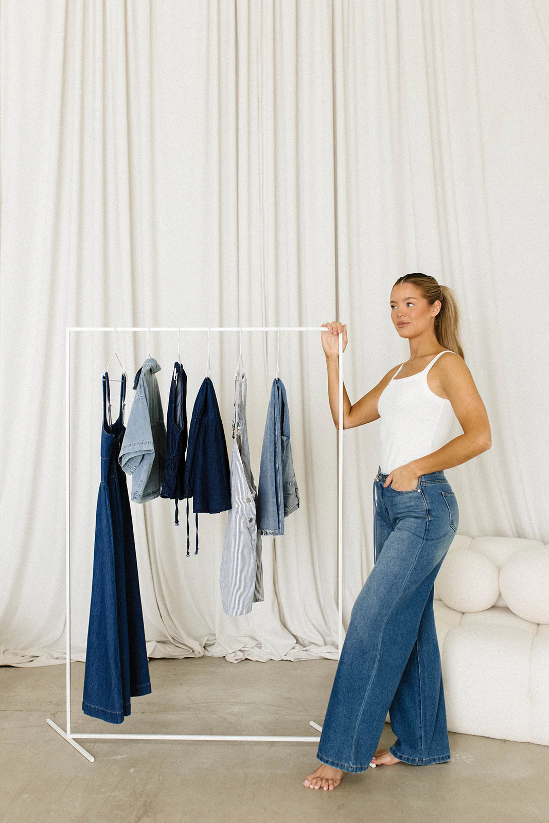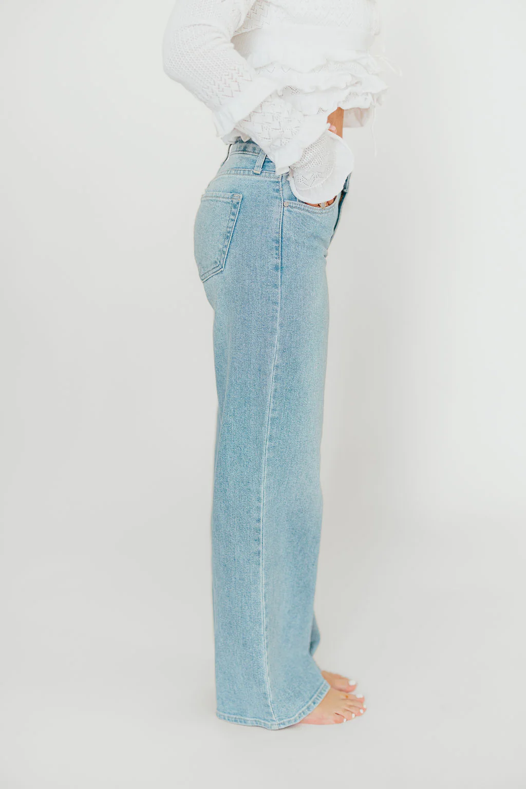 Andrea Elastic Waist Wide Leg Pants in Chambray
