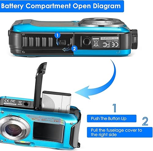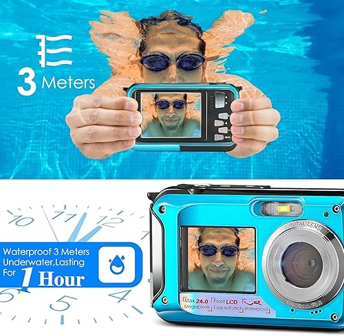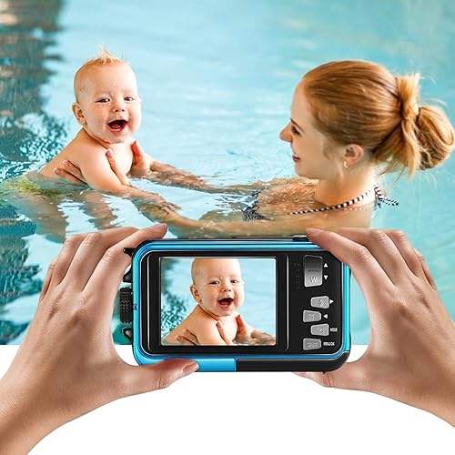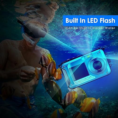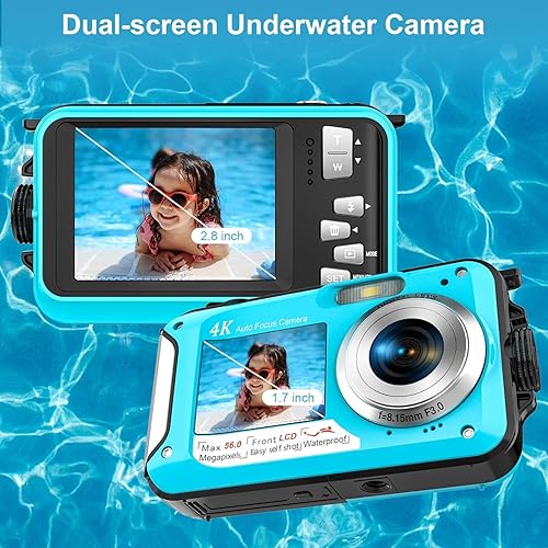 YISENCE Fotocamera subacquea UHD 4K 56MP Autofocus fotocamera digitale impermeabile con una scheda 32GB selfie doppio schermo fotocamera impermeabile per snorkeling