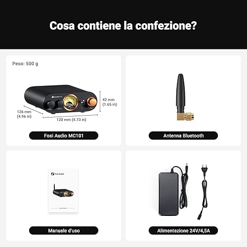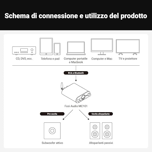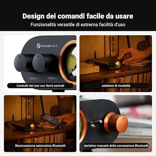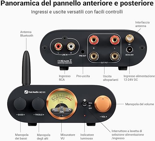 Fosi Audio MC101 Amplificatore Bluetooth 5.3, con VU Meter, Controllo dei Bassi e Acuti, 100Wx2 Mini Amplificatore Stereo HiFi a 2 Canali per Altoparlanti Passivi/Sistema HiFi Domestico/Home Theatre