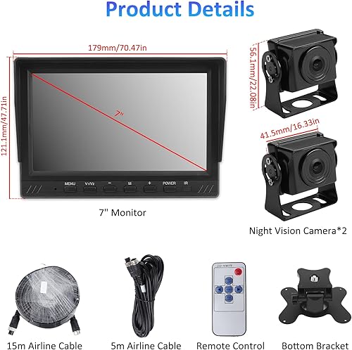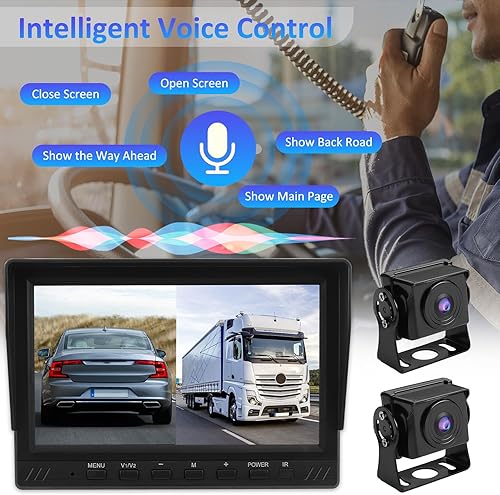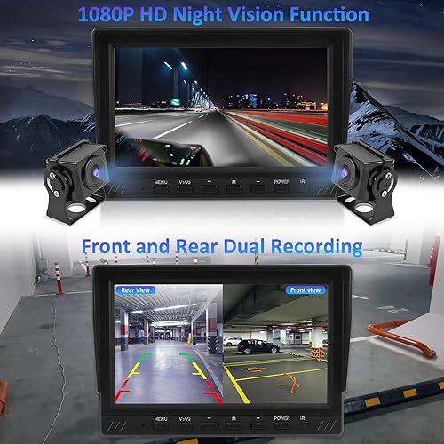 KAOLALI Telecamera di Retromarcia con Monitor da 7 Pollici, Kit Retrocamera Auto con 2 Telecamere per Auto, Supporto AHD 1080 HD Visione Notturna per Caravan/Camion ecc(12V-24V)