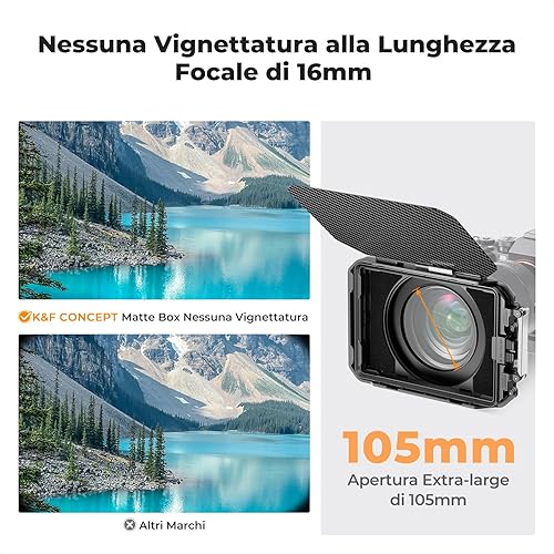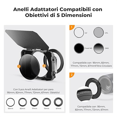 K&F Concept Mini Matte Box Lite con ND4 ND32 Filtro 4'x5,65', Bandiera Superiore Carbonio con 2 Vassoio Filtro 4''x5,65' per DSLR Fotocamere Mirrorless con Anello Adattatore Circolare 67/72/77/82/95mm