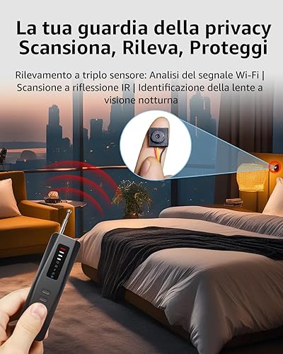 Liretope Rilevatore Microspie 6 in 1, Detector Telecamere Nascoste, GPS Tracker, Segnali RF gsm, Dispositivo Antispionaggio con Adattiva Sensibilità Regolabile per Casa, Ufficio, Hotel, Viaggi