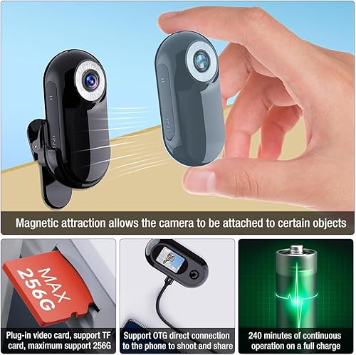 NAVESO Action Cam, Mini Action camera 1080p con Memory Card da 32GB, Action Cam Moto, Telecamere Nascoste da Esterno Body Cam e Accessori (Nero)
