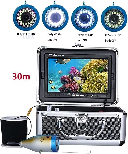 Bewinner Videocamera per la Pesca Subacquea Video Fish Finder, 30 M 1000TVL Megapixel Angolo di Visione di 92° con Display a Colori TFT da 7 Pollici 15 Lampade a Infrarossi