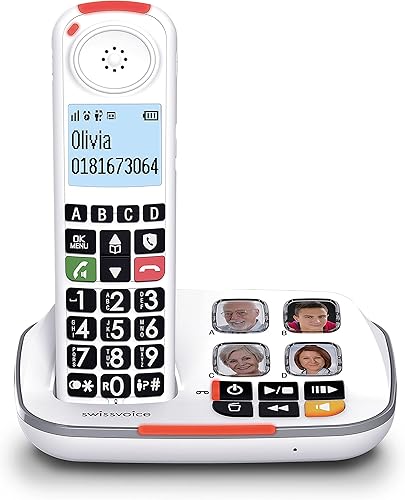 SWISSVOICE - Xtra 2355 Duo - DECT - Telefono fisso cordless con segreteria - Tasti grandi - Audio Boost - Suonerie forti - Compatibile con apparecchi acustici - Blocco chiamate - 2 portatili - Bianco
