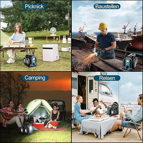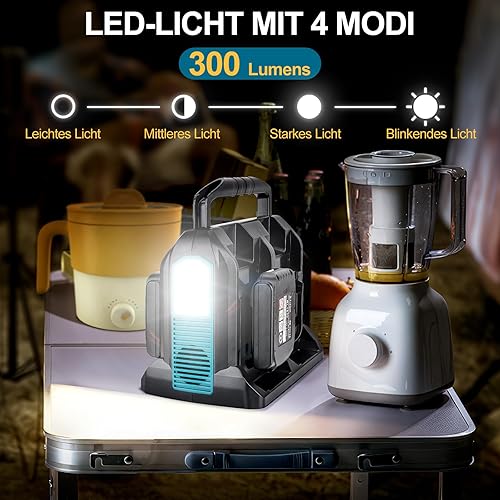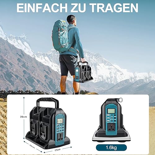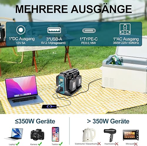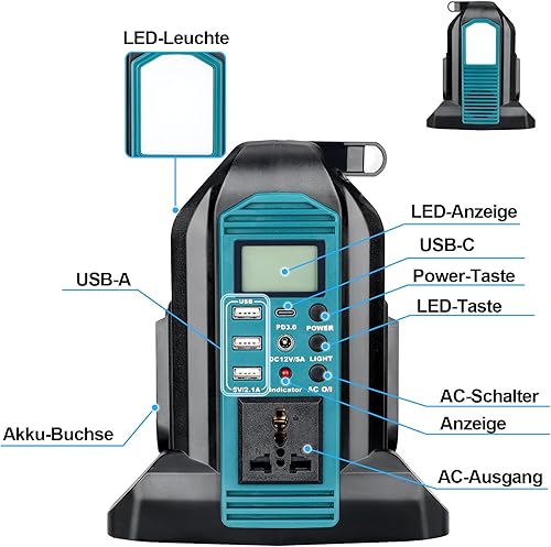 Inverter da 350 W per batteria Makita da 18 V, DC 18 V a AC 230 V, convertitore di tensione sinusoidale puro, 4 porte con connettore USB-A e USB-C, luce LED da 300 lm, per campeggio di emergenza