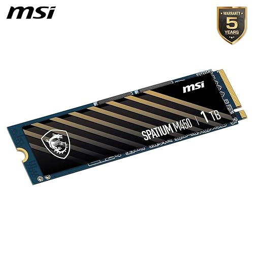 MSI SPATIUM M450 SSD 1TB - Unità a stato solido interna PCIe 4.0 NVMe M.2 V1, 3400 MB/s in lettura e 2400 MB/s in scrittura, NAND 3D, sicurezza dati integrata, centro - 5 anni di garanzia (350 TBW)