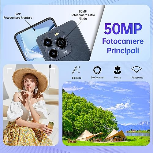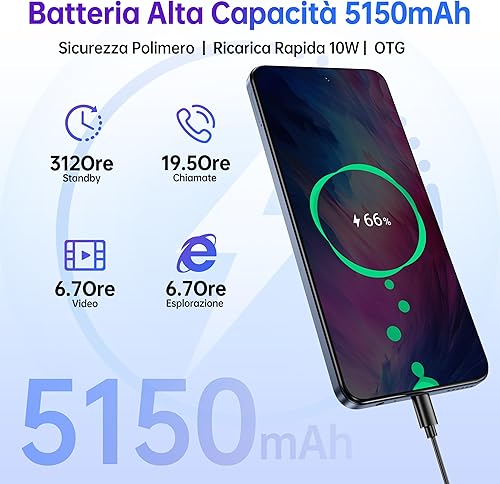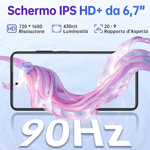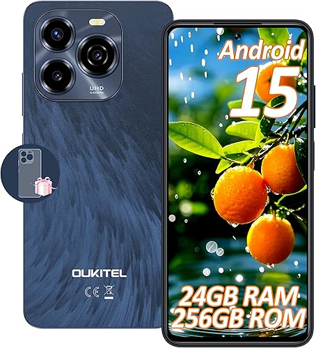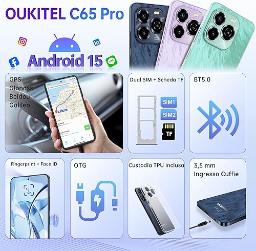OUKITEL C65 Pro Smartphone Android 15-24(8+16) GB RAM + 256GB ROM Telefoni - 6.7''HD+ 90Hz 50MP+8MP Camera, 5150mAh Cellulari e Smartphone 3.5mm Jack/Dual SIM 4G/Face ID/Fingerprint/BT5.0 Blu