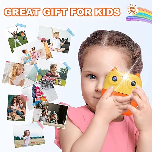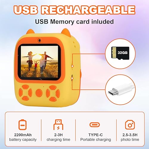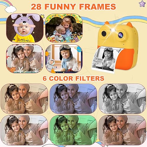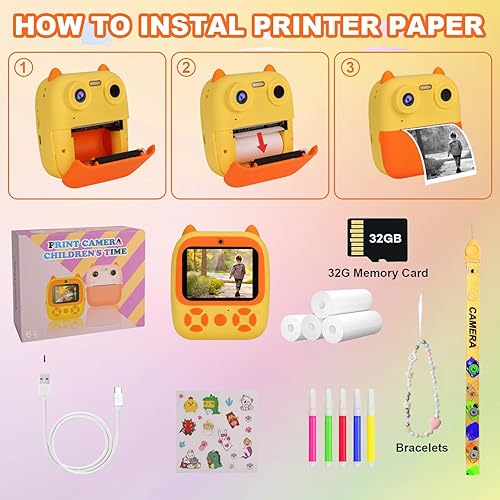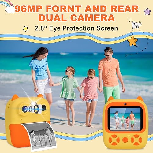 OKYUK Fotocamera istantanea per bambini, HD, 1080P, con 4 rotoli di carta da stampa e scheda SD da 32 G, doppia lente da 2,4 pollici, fotocamera per bambini, fotocamera digitale, fotocamera per selfie