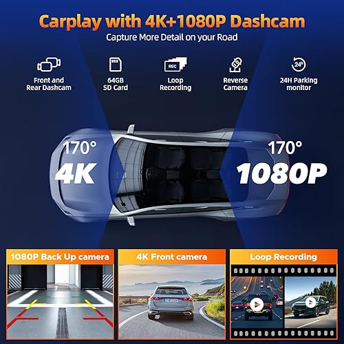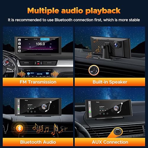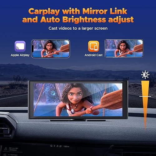 Volam 9.26 pollici Schermo Carplay Auto, Autoradio Portatile con Carplay Android Auto Wireless, Schermo tattile, IOS Mirror Link, Navigazione, Assistente Vocale Siri, G00gle, FM, AUX, Bluetooth 5.0