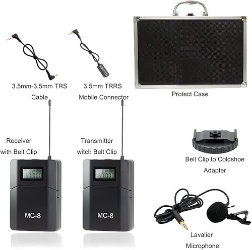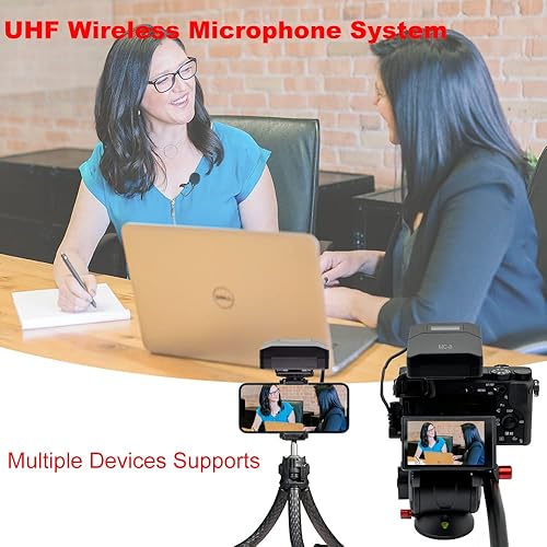 MC8 6 Canali UHF Microfono Lavalier Wireless Senza Fili Lavalier Microfono per Fotocamera compatibile per Telecamera DSLR e Videocamere Smartphone Utilizzato per Riprese Video Yoga Youtube