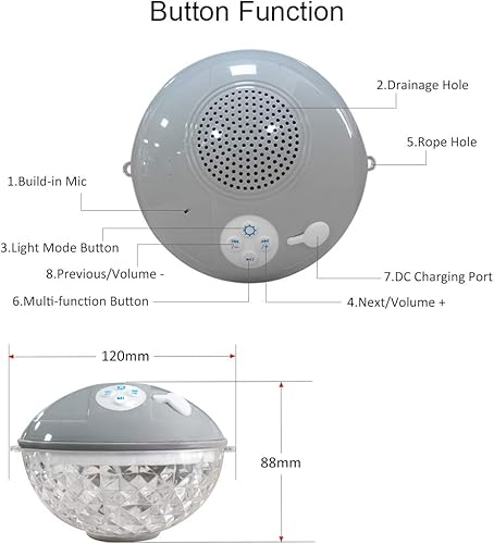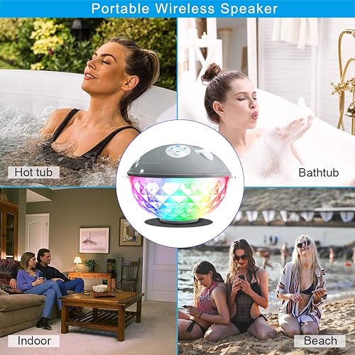 Uekars Altoparlanti Bluetooth portatili, altoparlanti per piscine galleggianti impermeabili IPX7 con luce Lolorea LED, altoparlante doccia per vasca idromassaggio, spa, outdoor, stagno, spiaggia,