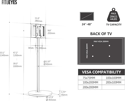 Design Supporto TV da Pavimento per 24' - 48' Televisore Portatile con Ruote Massima 20 kg Regolazione Altezza Massimo VESA 200 * 200mm Serie Master