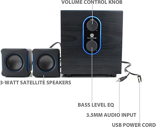 GOgroove SonaVERSE LBr 2.1 Altoparlanti per Computer con Subwoofer - USB Alimentato con Manopole di Controllo Volume/Bassi - Ideale per Laptop, Piccola Scrivania